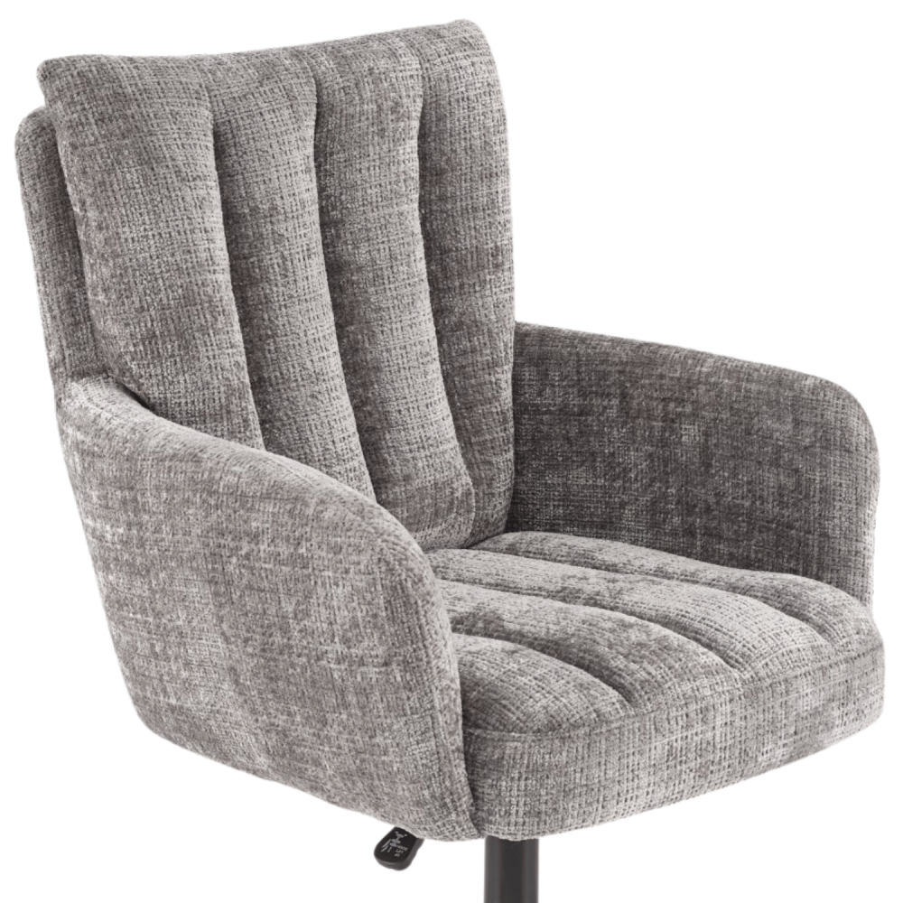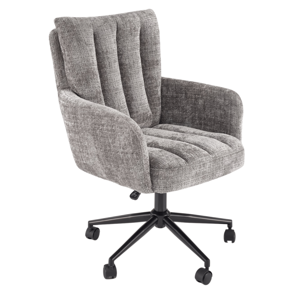 Dzięki precyzyjnie wykonanemu pikowaniu, MISHEL emanuje spokojną elegancją i dojrzałym stylem – delikatne zagłębienia tworzą grę światła i cienia, podkreślając trójwymiarowość tapicerki i dodając fotelowi głębi wizualnej. Wygodne podłokietniki zapewniają naturalne wsparcie dla przedramion, redukując napięcie w barkach podczas długiej pracy przy biurku. Regulowana wysokość siedziska (49–57 cm) gwarantuje idealne dopasowanie do każdego stołu (standardowa wysokość 72–76 cm), a funkcja obrotu 360° pozwala swobodnie sięgać po dokumenty bez wstawania. Subtelny popielaty kolor CREMONA #96 dodaje wnętrzu atmosfery nowoczesności, harmonii i profesjonalnego spokoju – idealny dla domowego gabinetu lub nowoczesnego biura.