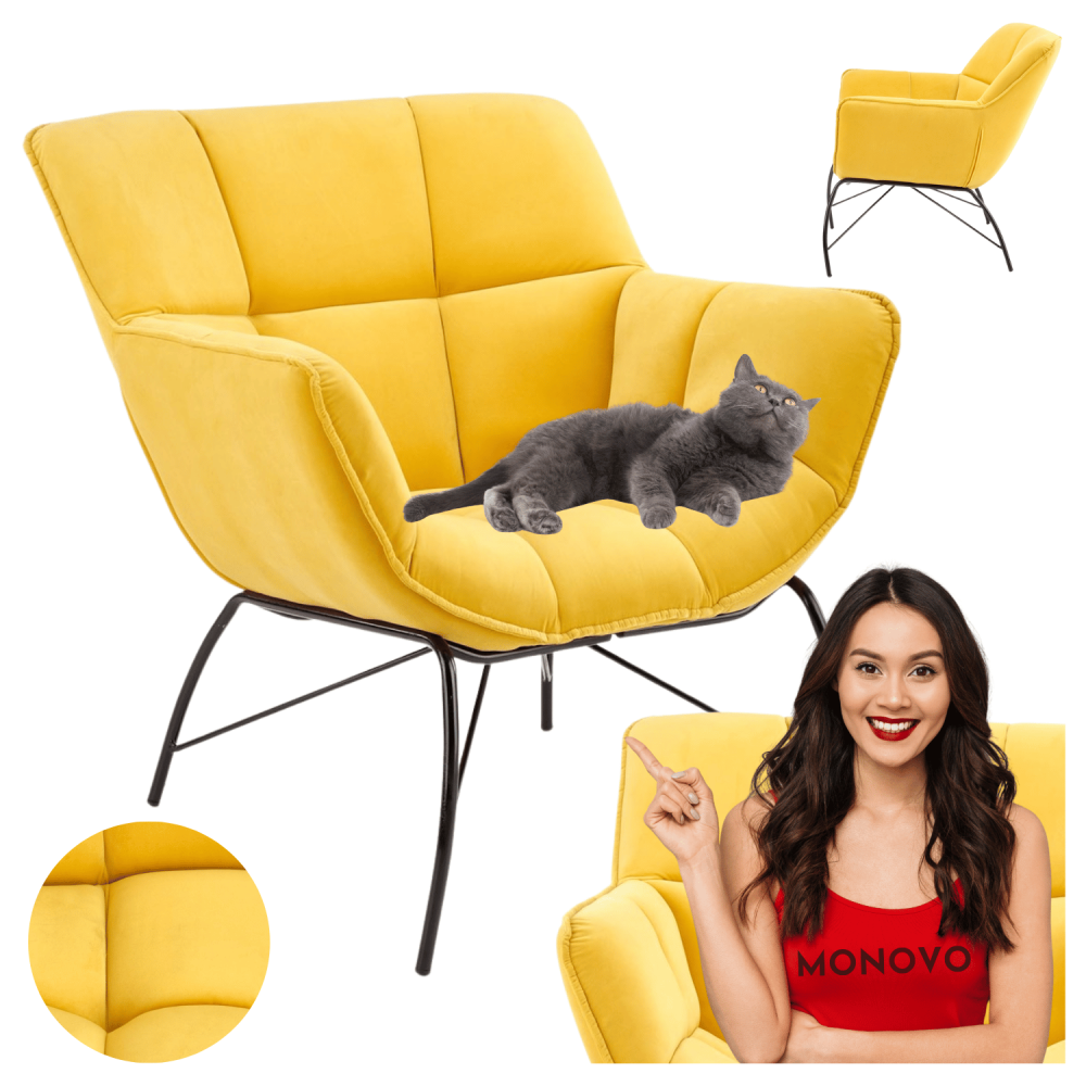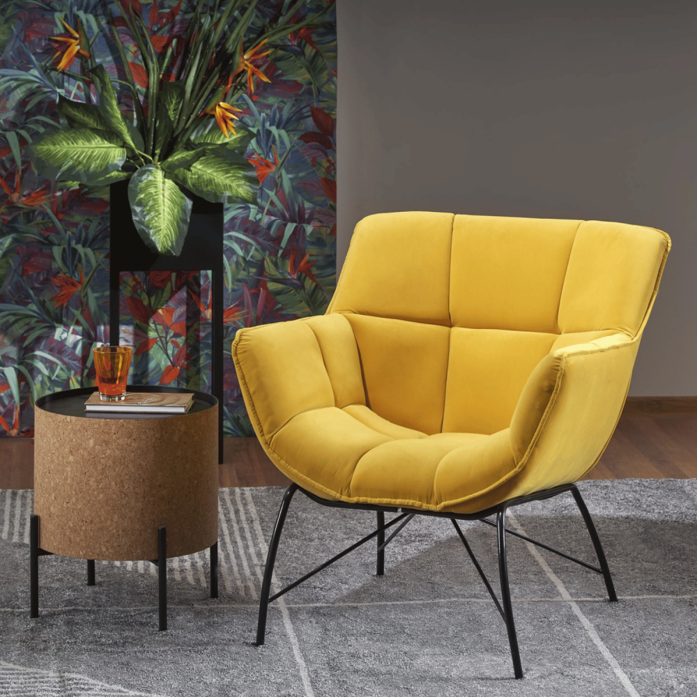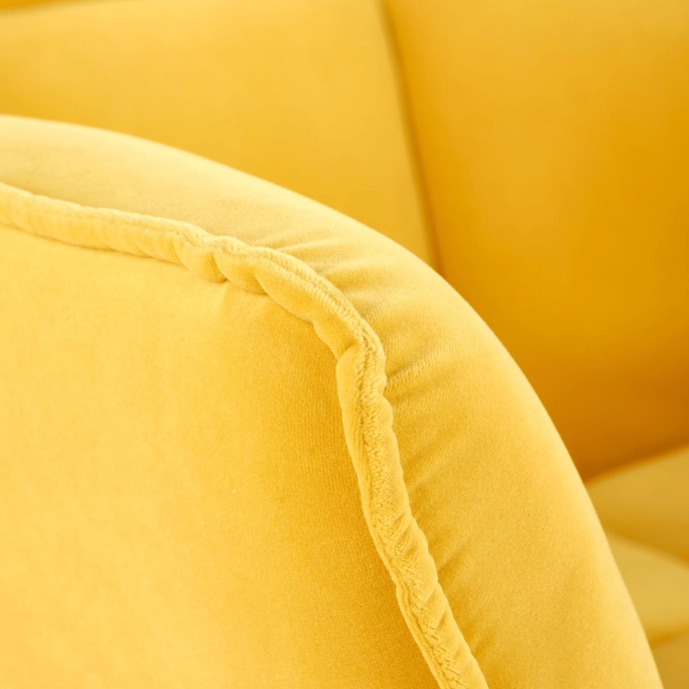Fotel wypoczynkowy BELTON to mebel, który od pierwszego wejrzenia wprowadza do wnętrza nutę radości i energii dzięki intensywnemu odcieniowi żółci. Jego siedzisko i oparcie pokryte miękkim welurem Velvet zapewniają nie tylko wyrafinowany dotyk, ale także trwałość i łatwość utrzymania czystości – idealne rozwiązanie dla osób ceniących sobie zarówno styl, jak i funkcjonalność. Charakterystyczne pikowanie w formie rombów dodaje fotelowi retro elegancji, co świetnie współgra z jasnymi ścianami, betonowymi podłogami czy metalowymi akcentami. To więcej niż miejsce do siedzenia – to prawdziwy punkt akcentowy Twojego salonu lub pokoju gościnnego.