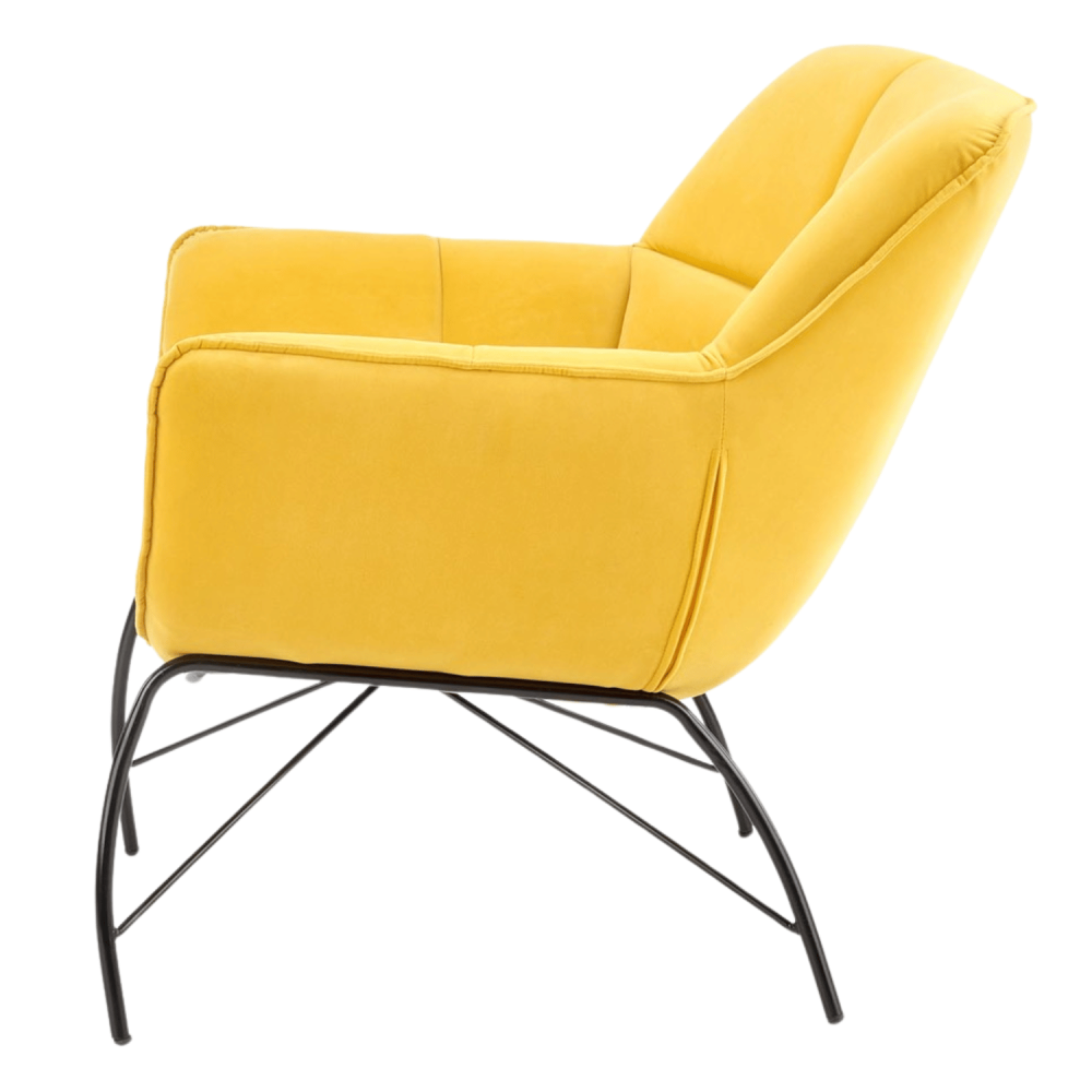 Fotel Wypoczynkowy BELTON – Żółty Welurowy z Pikowaniem w Stylu Loft