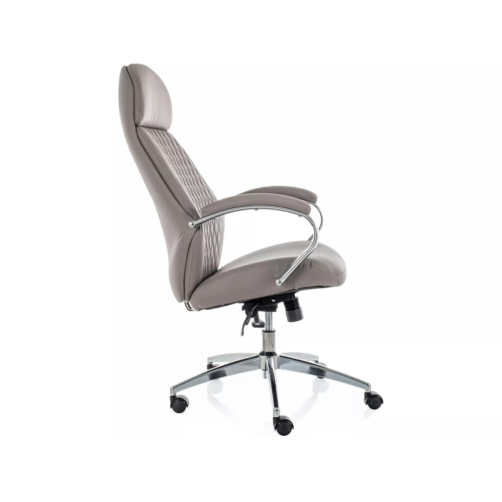 Fotel obrotowy, ekoskóra, kolor: szary, multiblock, stałe podłokietniki.