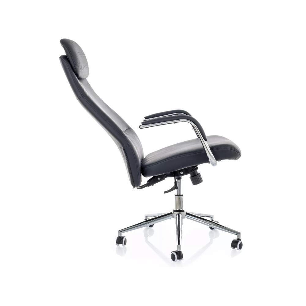 Fotel obrotowy, ekoskóra, kolor: czarny, multiblock, regulowany zagłówek, stałe podłokietniki.