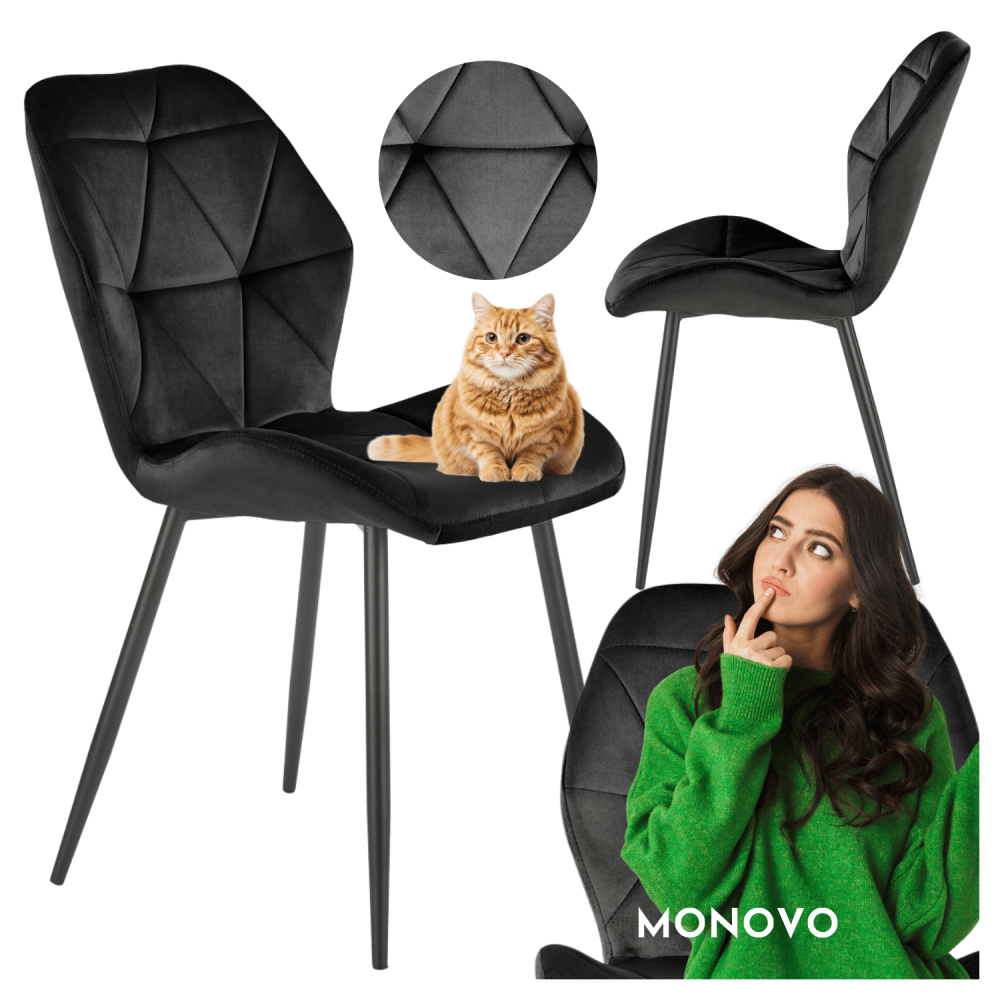 Nowoczesne Krzesło Tapicerowane K453 – Welurowe Krzesło w Kolorze Czarnym