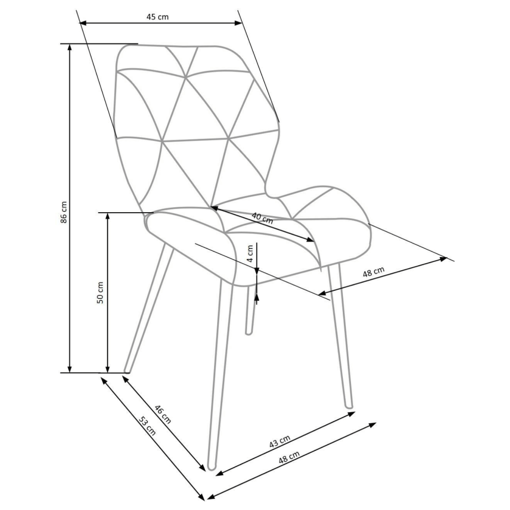 Dzięki ergonomicznym proporcjom – szerokość 48 cm, głębokość 53 cm, wysokość siedziska 50 cm – krzesło K453 zapewnia pełne wsparcie dla pleców i bioder, a miękka tkanina weluru sprawia, że każde w nim siedzenie staje się przyjemnością. Solidna konstrukcja z stali malowanej proszkowo w kolorze czarnym gwarantuje trwałość i stabilność na lata, a intensywny kolor czerni nadaje wnętrzu elegancji i dojrzałego stylu.