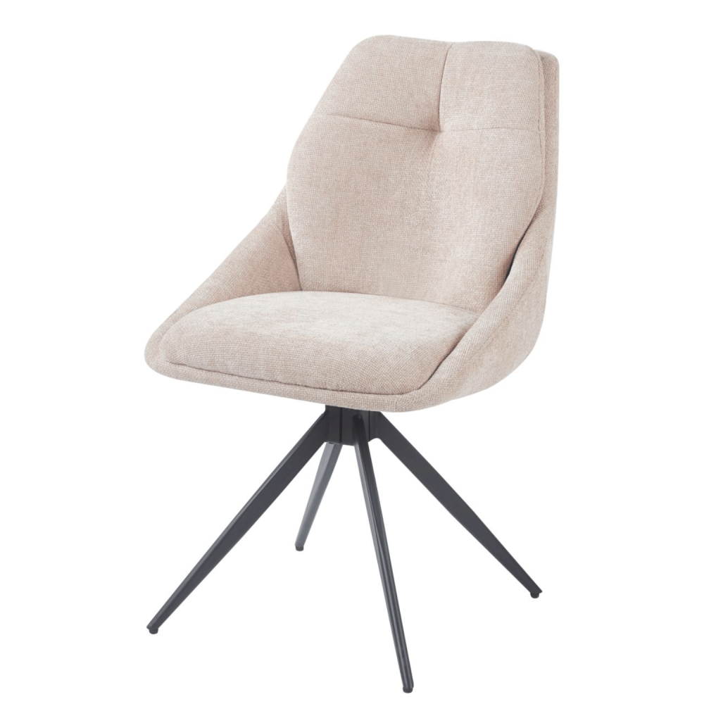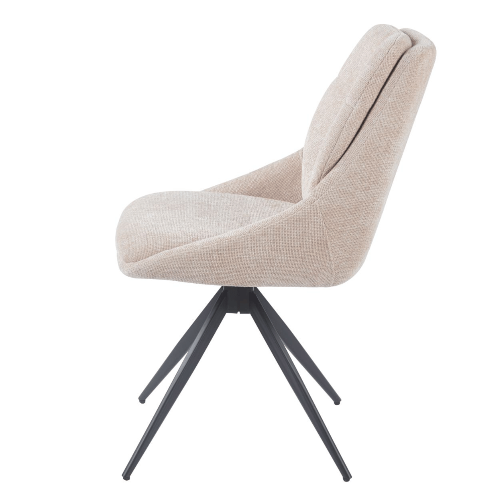 Beżowe Nowoczesne Krzesło Obrotowe FLOSY to idealna propozycja zarówno dla nowoczesnych salonów, jak i stylowych jadalni. Dzięki mechanizmowi obrotowemu o zakresie 360 stopni oraz wygodnemu oparciu z miękką poduszką, zapewnia nie tylko funkcjonalność, ale i maksymalny komfort użytkowania. Beżowa tkanina dodaje ciepła wnętrzu, a czarna metalowa podstawa malowana proszkowo nadaje mu industrialnego charakteru typowego dla stylu loft.