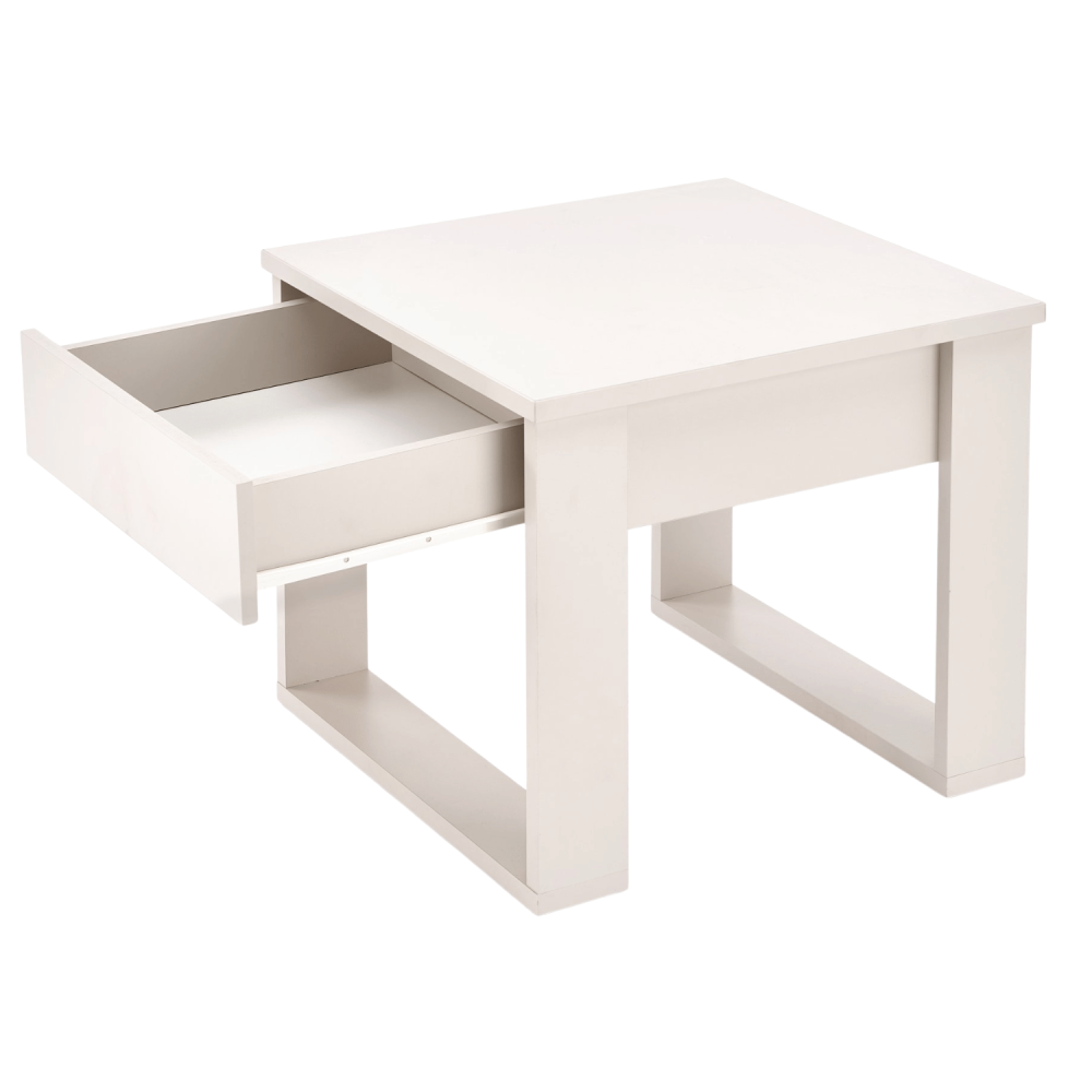 Nowoczesny Stolik Kawowy Kwadratowy NEA – Skandynawski Stolik z Szufladą w Kaszmirowym Odcieniu