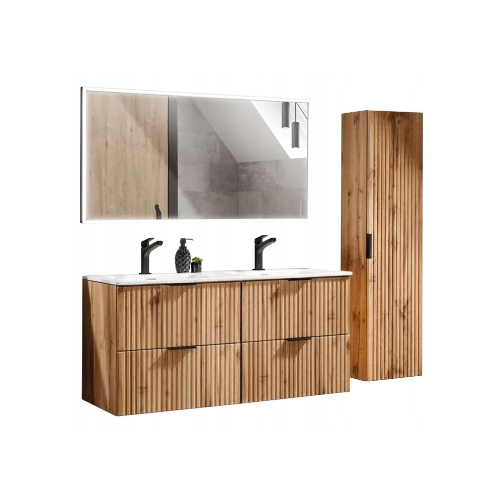 Zestaw Mebli Łazienkowych Szafka z Podwójną Umywalką 120 cm Dąb Wotan Ryflowana ADEL OAK Comad