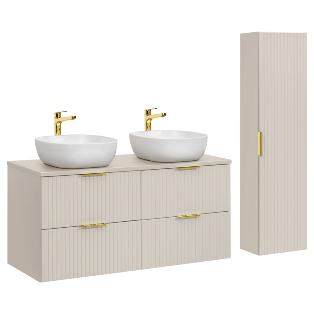 Kompletny Zestaw Łazienkowy ADEL CASHMERE 120 cm z Podwójną Umywalką i Słupkiem
