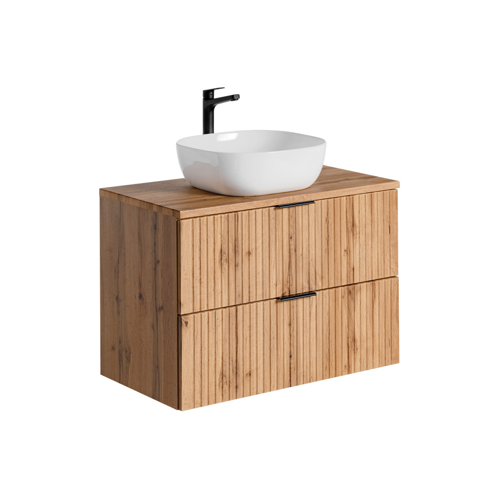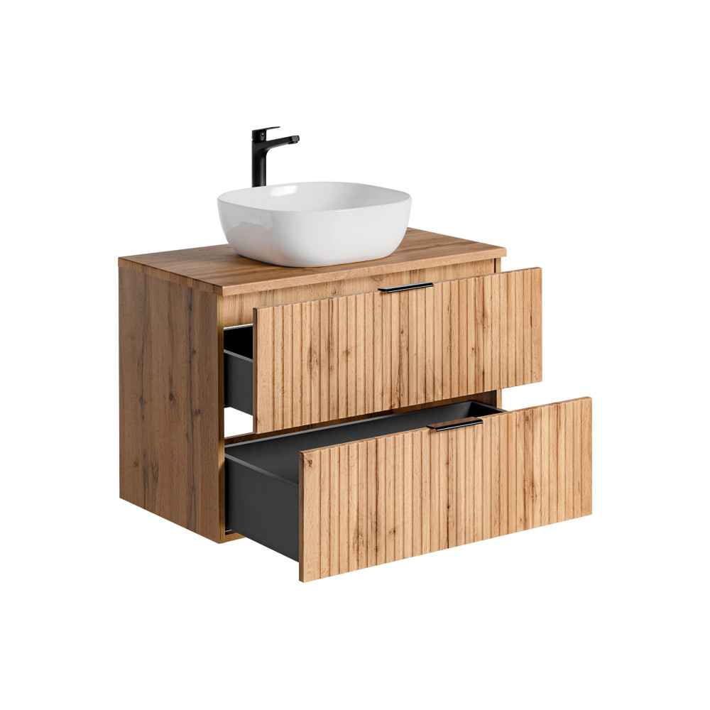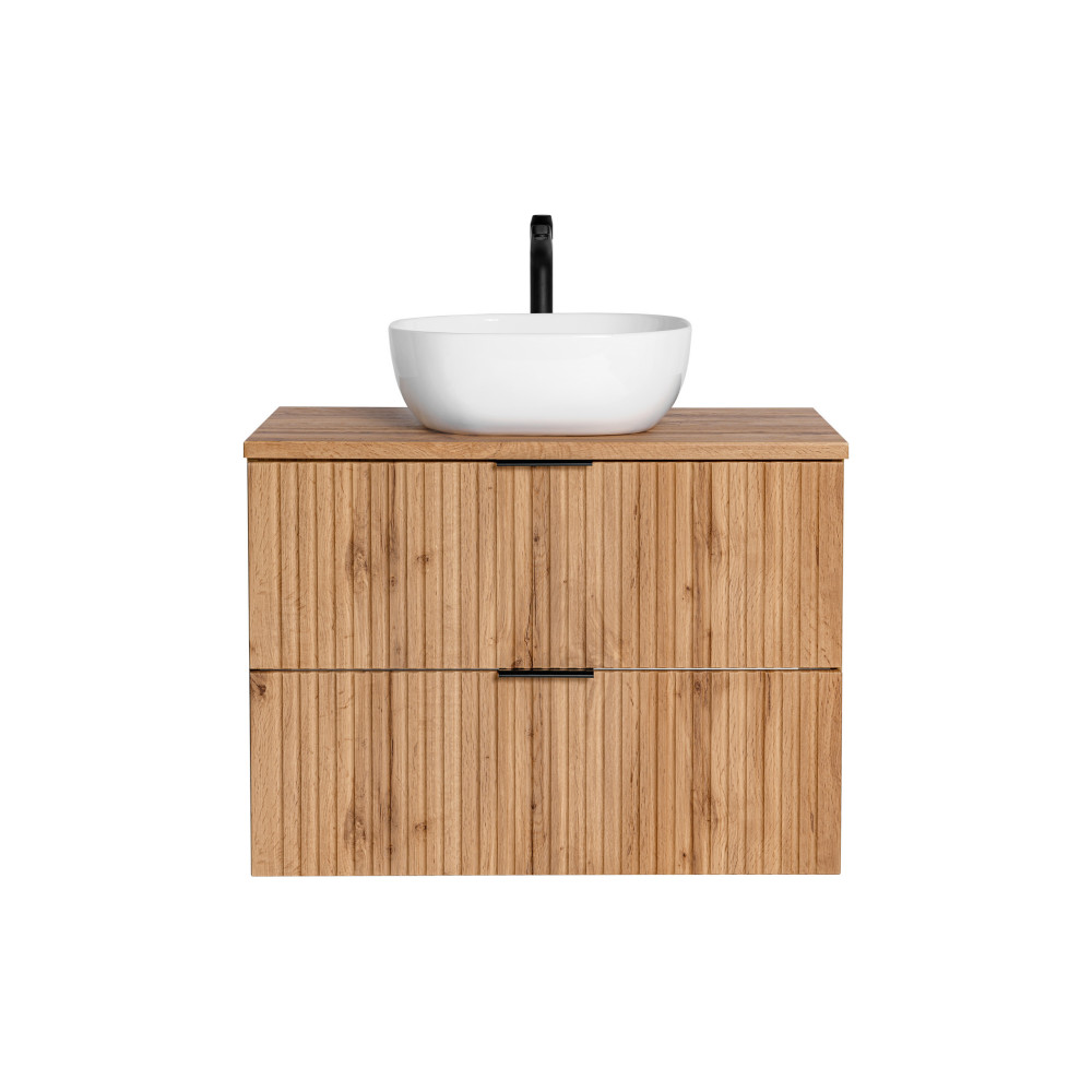 Nowoczesna Ryflowana Szafka Łazienkowa z Umywalką 80 cm Dąb Wotan ADEL OAK Comad