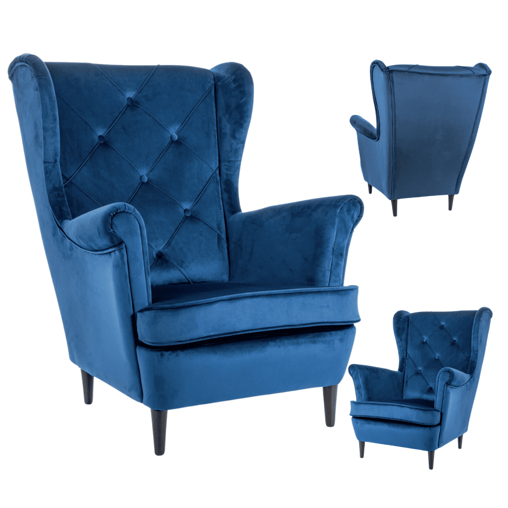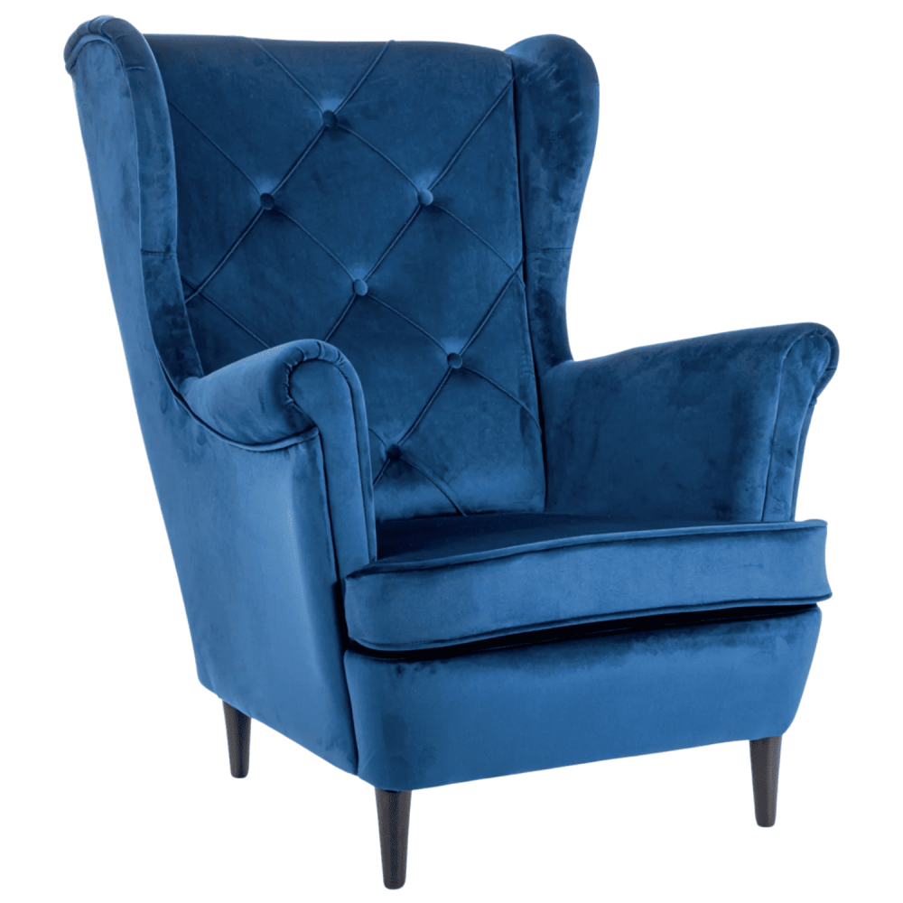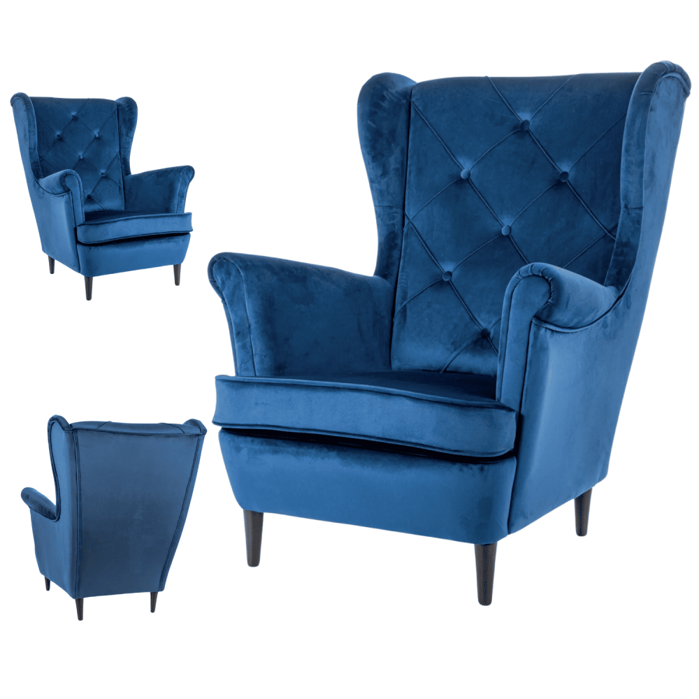 Jednoosobowy Fotel Welurowy Pikowany Wypoczynkowy Granatowy do Salonu Loft FRANSI