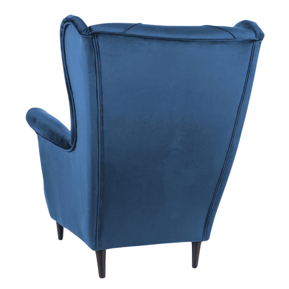 Fotel, tkanina aksamit, kolor: wg próbnika: Bluvel 86 - granatowy , drewno, kolor: wenge.