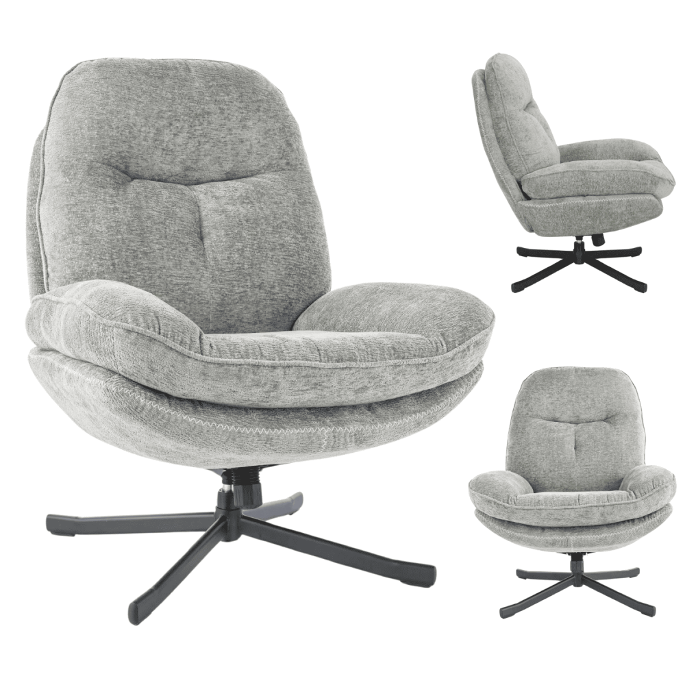 Wypoczynkowy Fotel Obrotowy Jednoosobowy Szary do Salonu Loft KRISTIN