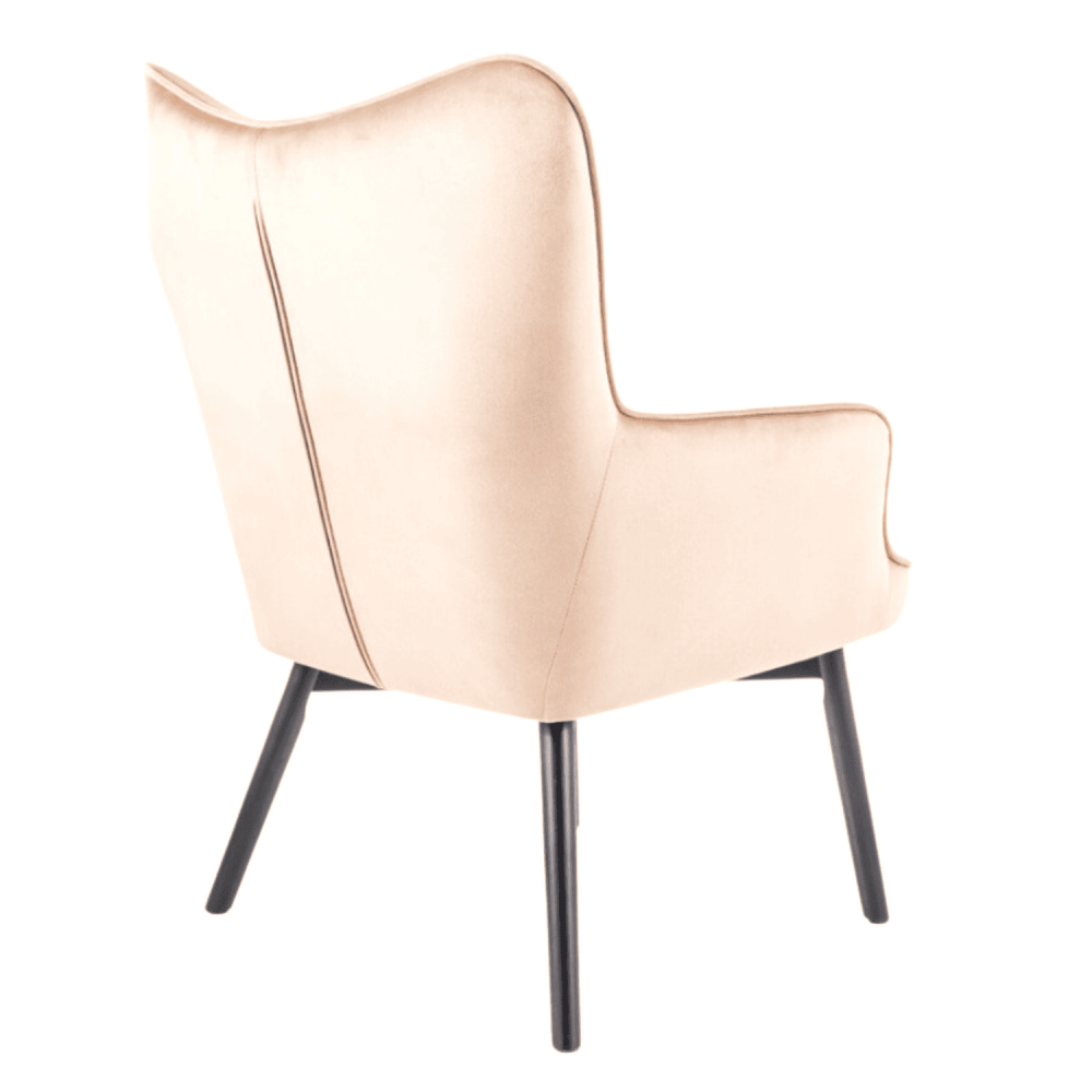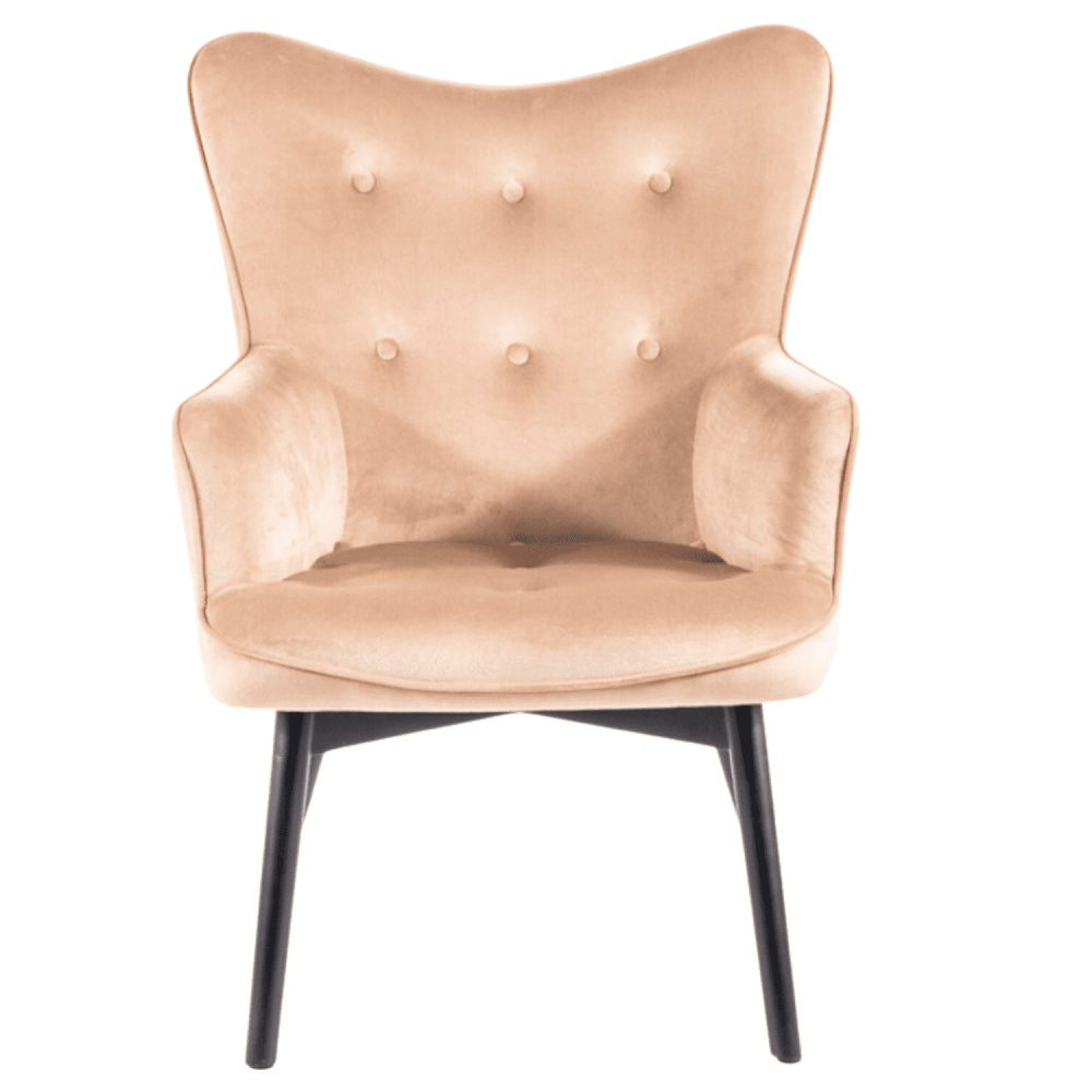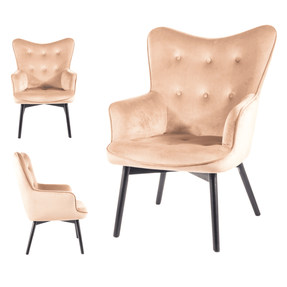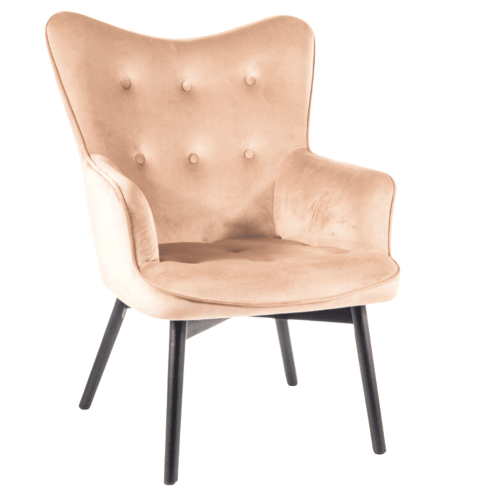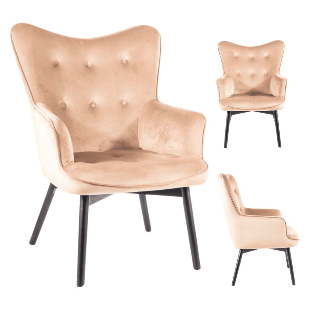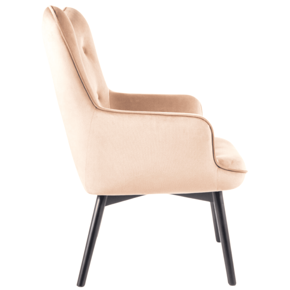 Fotel, tkanina aksamit, kolor: beż Bluvel 28, drewno, kolor: czarny mat