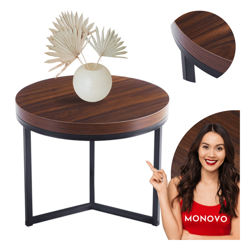 Stolik Kawowy ROTON – Okrągły w Odcieniu Ciemny Orzech