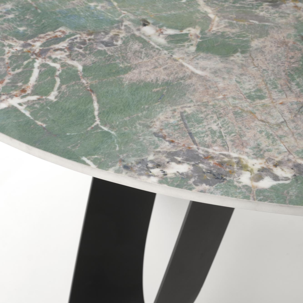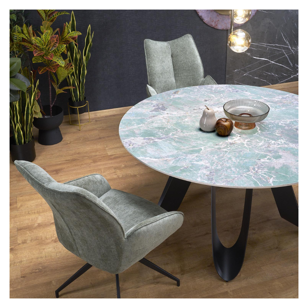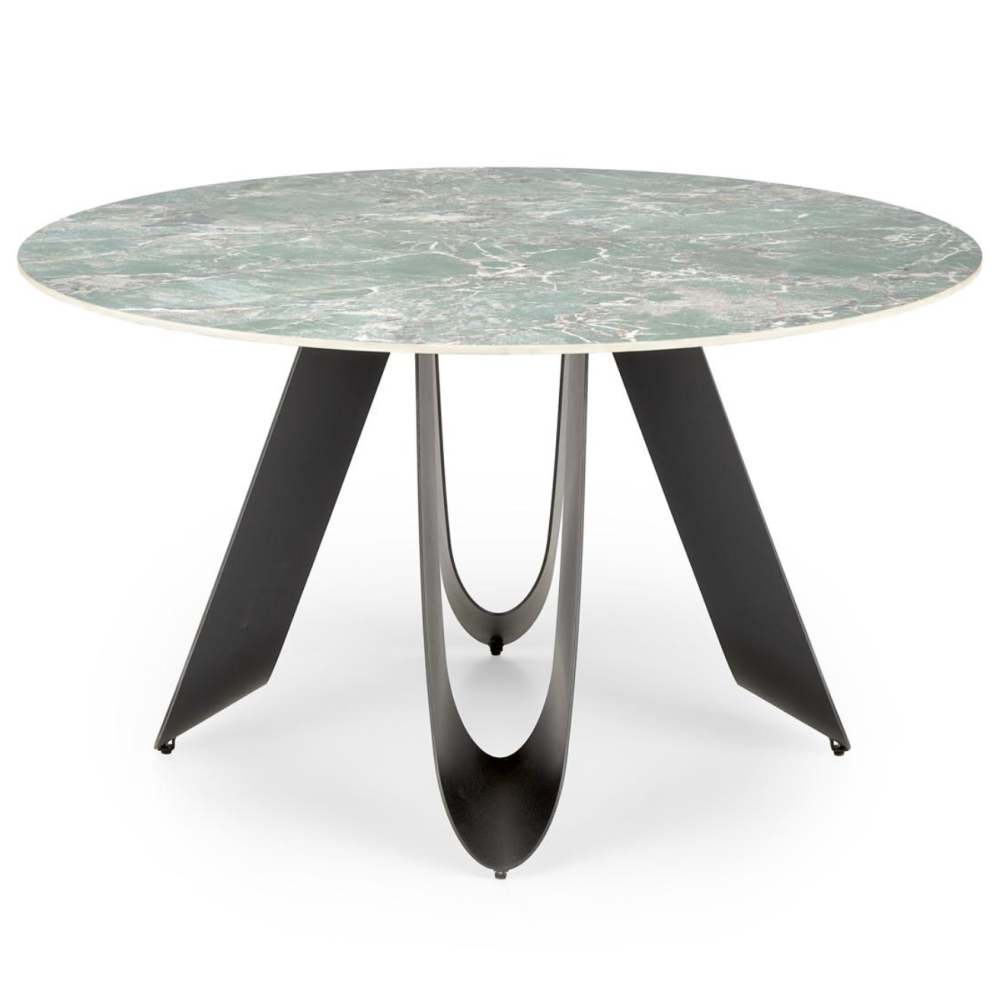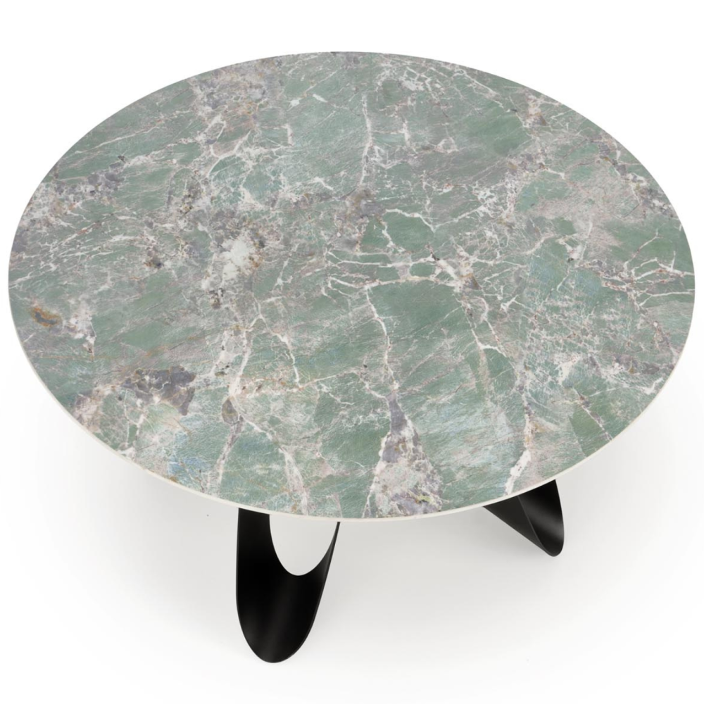 Stół Okrągły do Salonu Nowoczesny Mały do Jadalni Metalowy GIOVANI Zielony Marmur Czarny Halmar