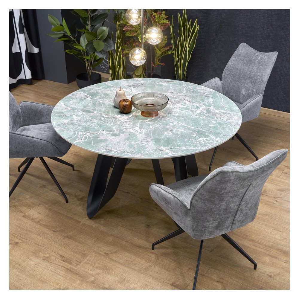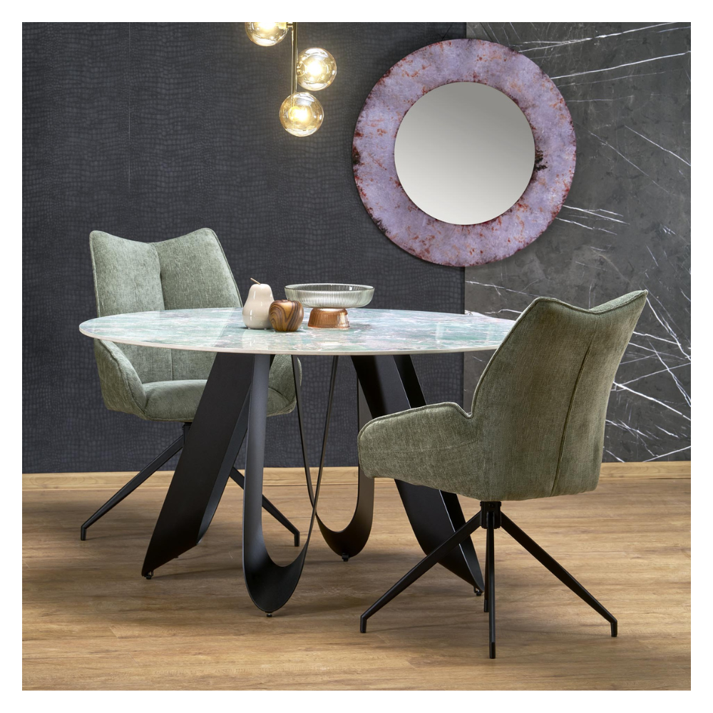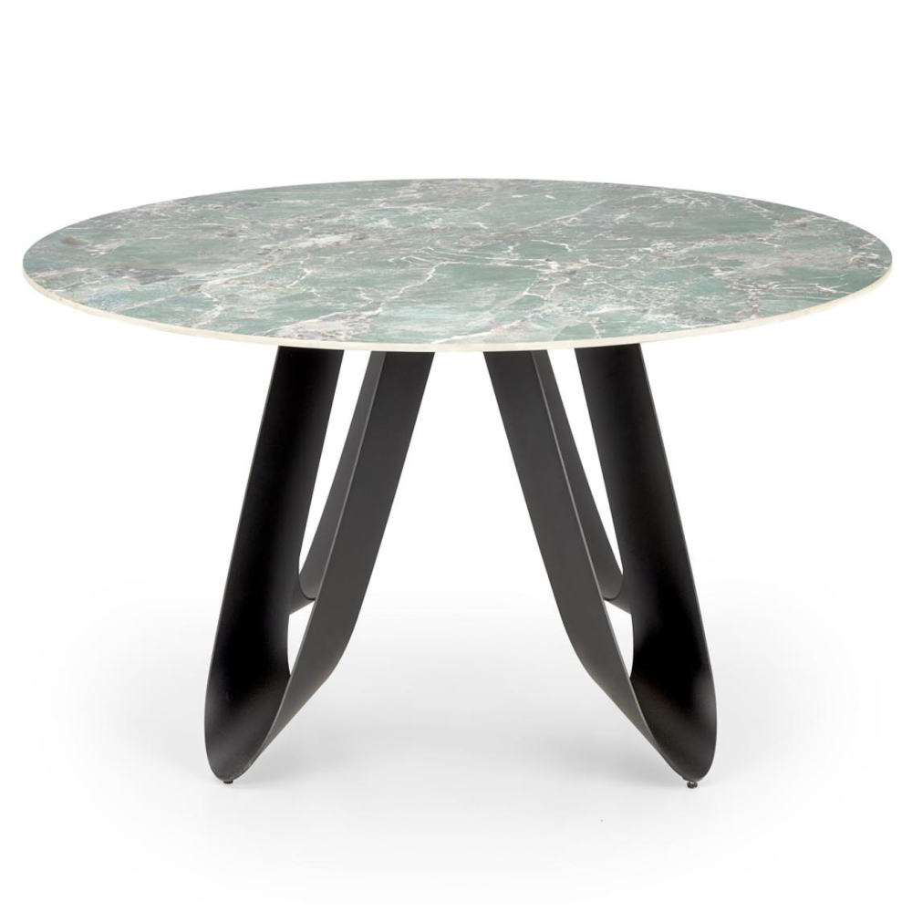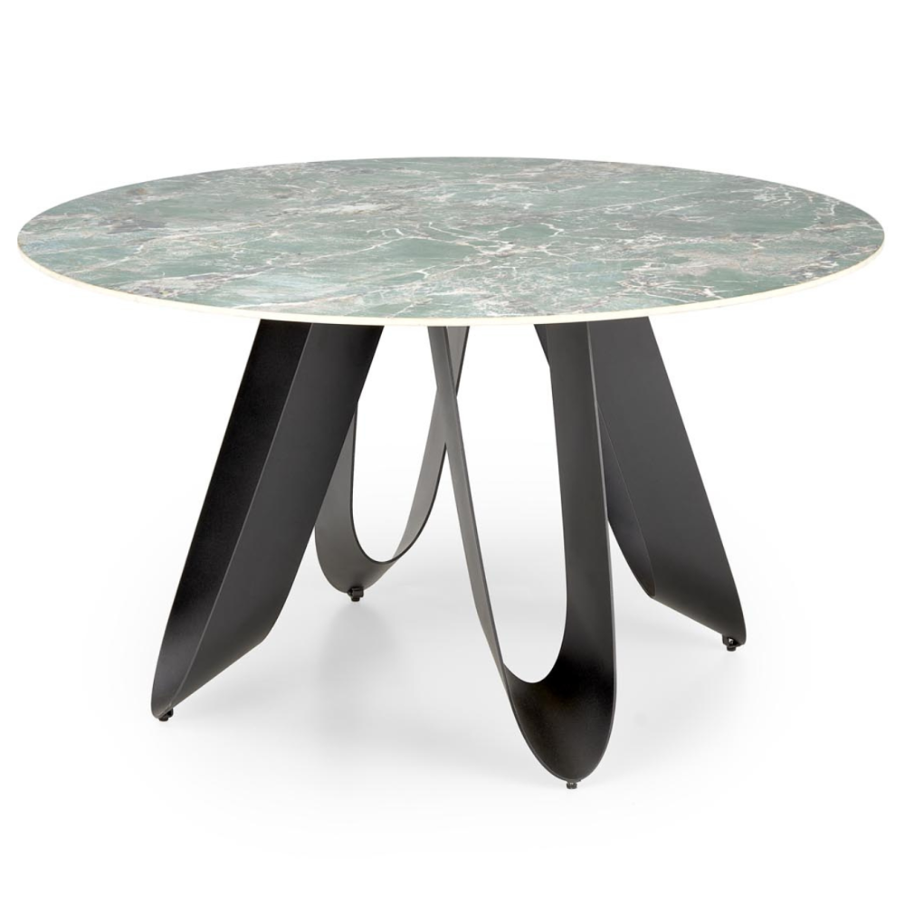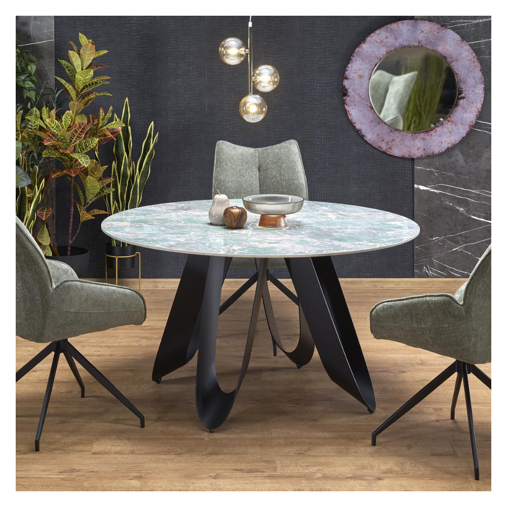 Stół Okrągły do Salonu Nowoczesny Mały do Jadalni Metalowy GIOVANI Zielony Marmur Czarny Halmar