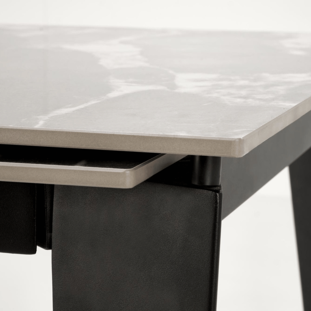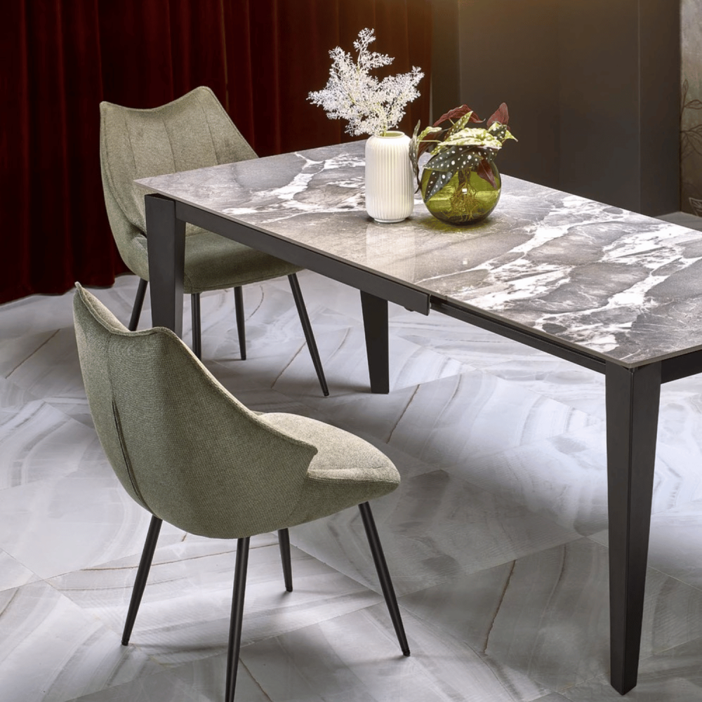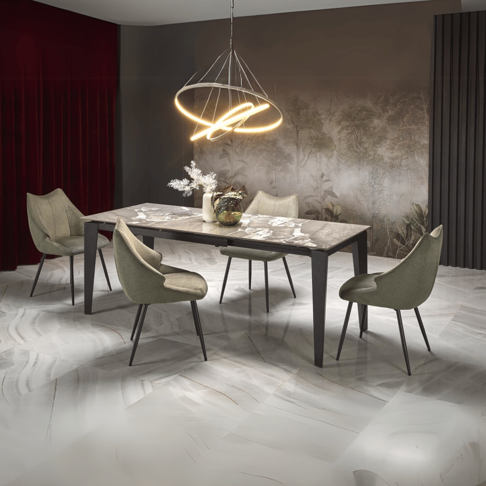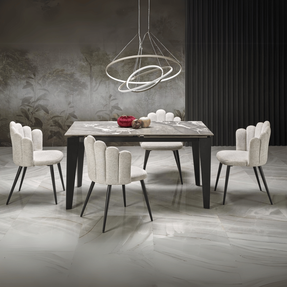 Wprowadź do swojej jadalni powiew luksusu i funkcjonalności dzięki stołowi FELIX. Ten elegancki stół rozkładany łączy w sobie wyrafinowany blat popielaty marmur wykonany ze spieku ceramicznego oraz solidną, czarną metalową podstawę. Każde spotkanie przy nim staje się niezapomnianym wydarzeniem – od rodzinnego śniadania po wieczorne przyjęcie z przyjaciółmi. Zanurz się w atmosferze nowoczesnego designu i poczuj satysfakcję, jaką daje perfekcyjnie dobrany stół do jadalni.