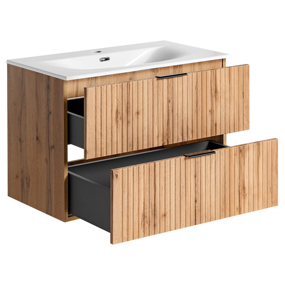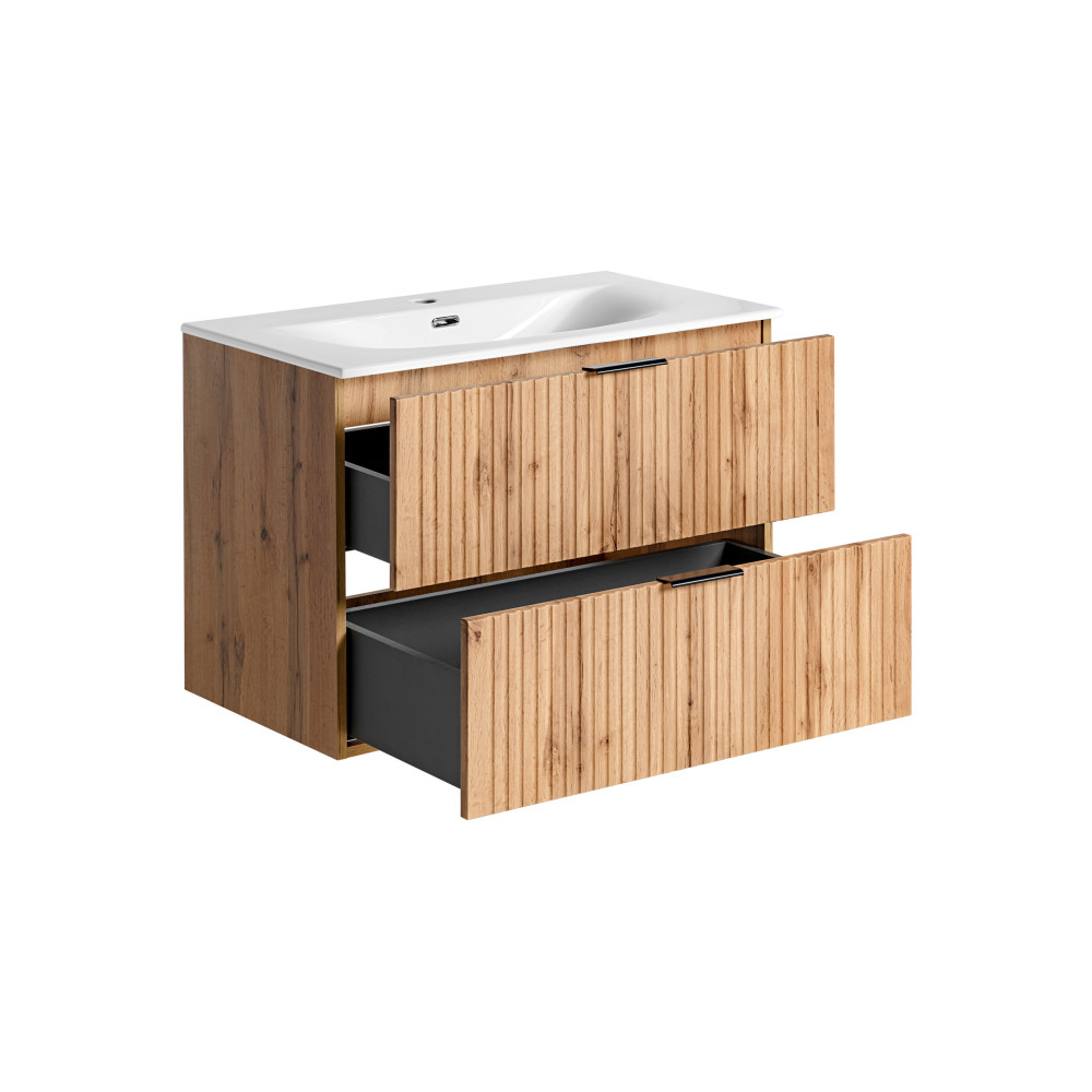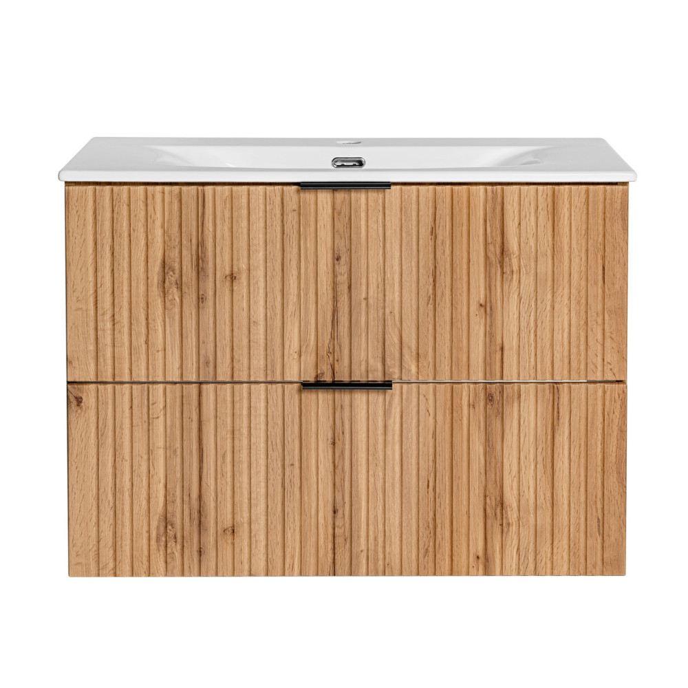 Nowoczesna Szafka Łazienkowa z Umywalką Ryflowana Dąb Wotan ADEL OAK Comad