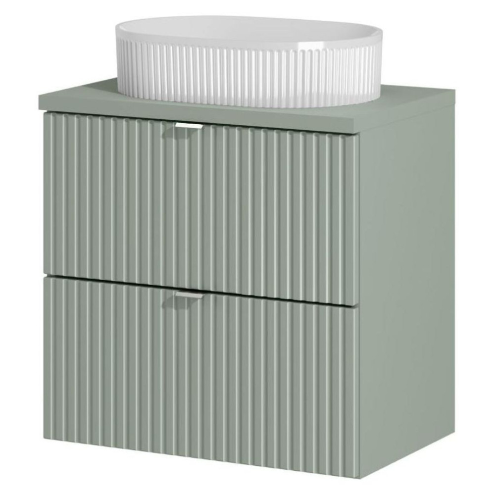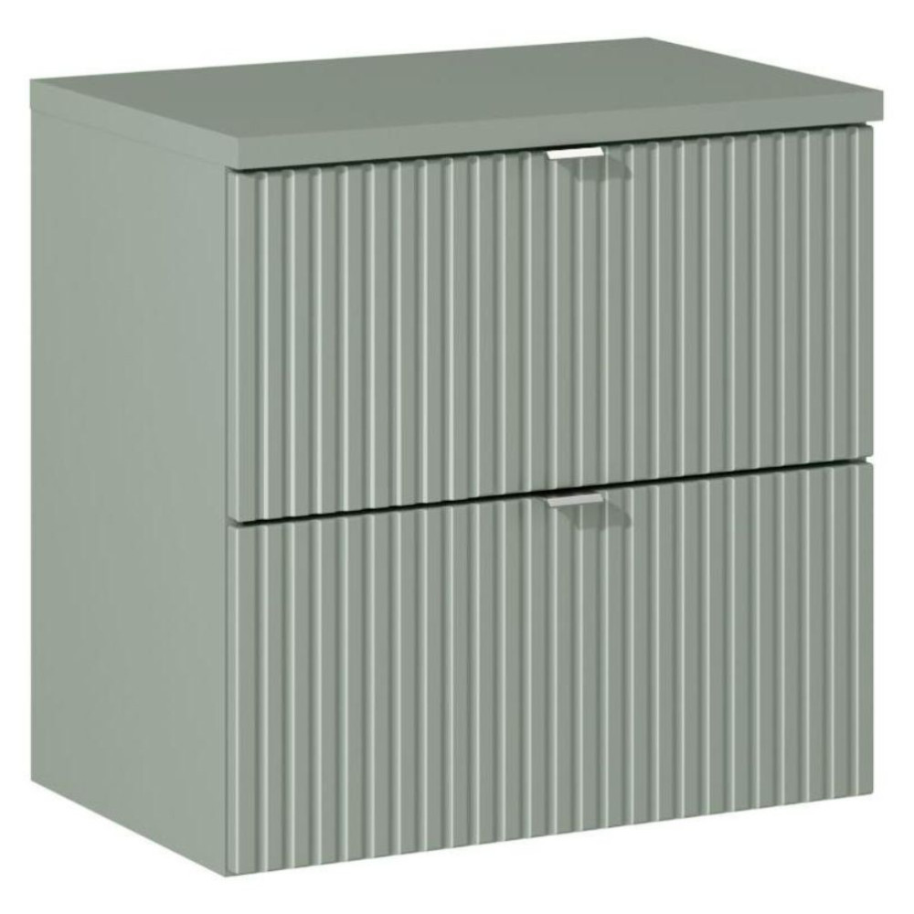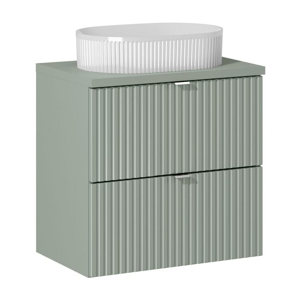 Nowoczesna Ryflowana Szafka z Umywalką 60 cm do Łazienki z Szufladami Zieleń Szałwiowa LINE REED GREEN Comad