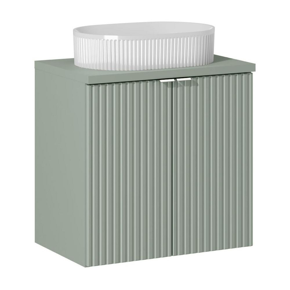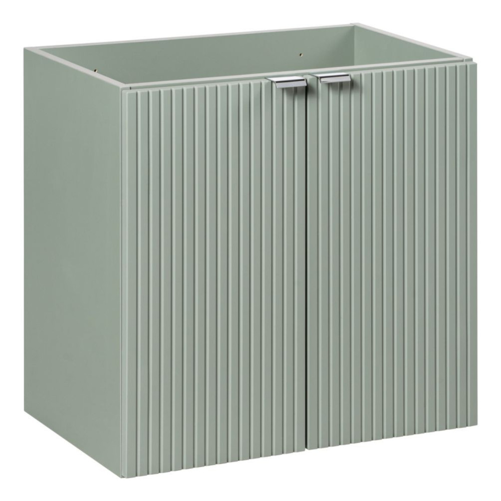 Ryflowana Szafka z Umywalką 60 cm do Łazienki 2 Drzwiowa Szałwiowy Zielony Mat LINE REED GREEN Comad