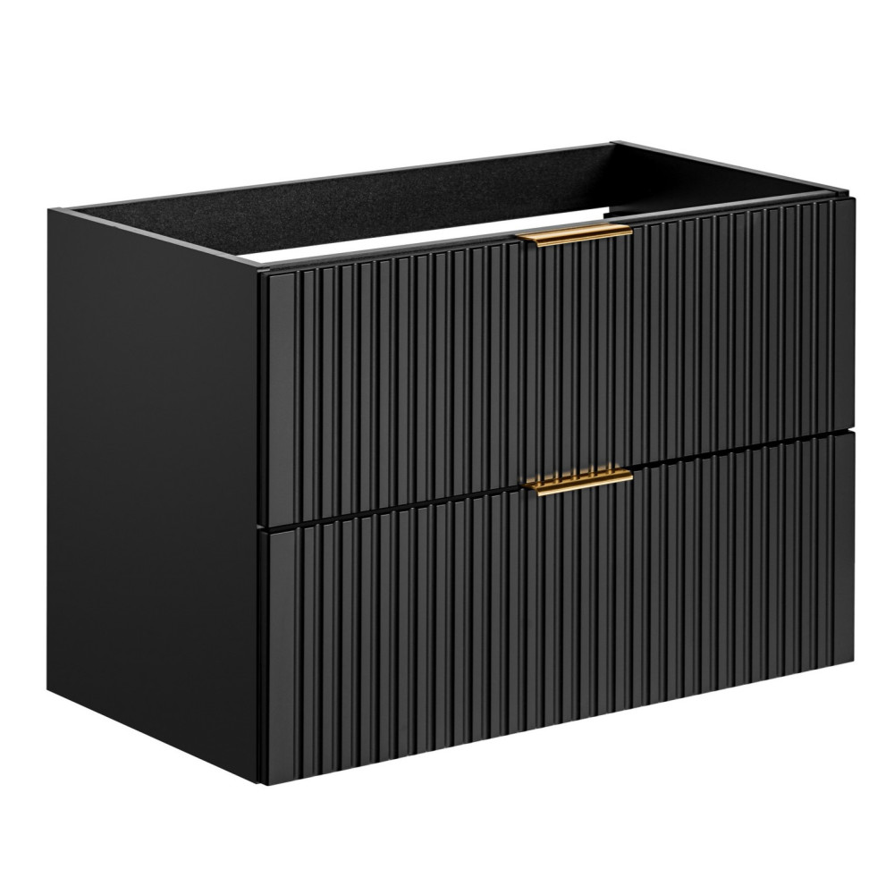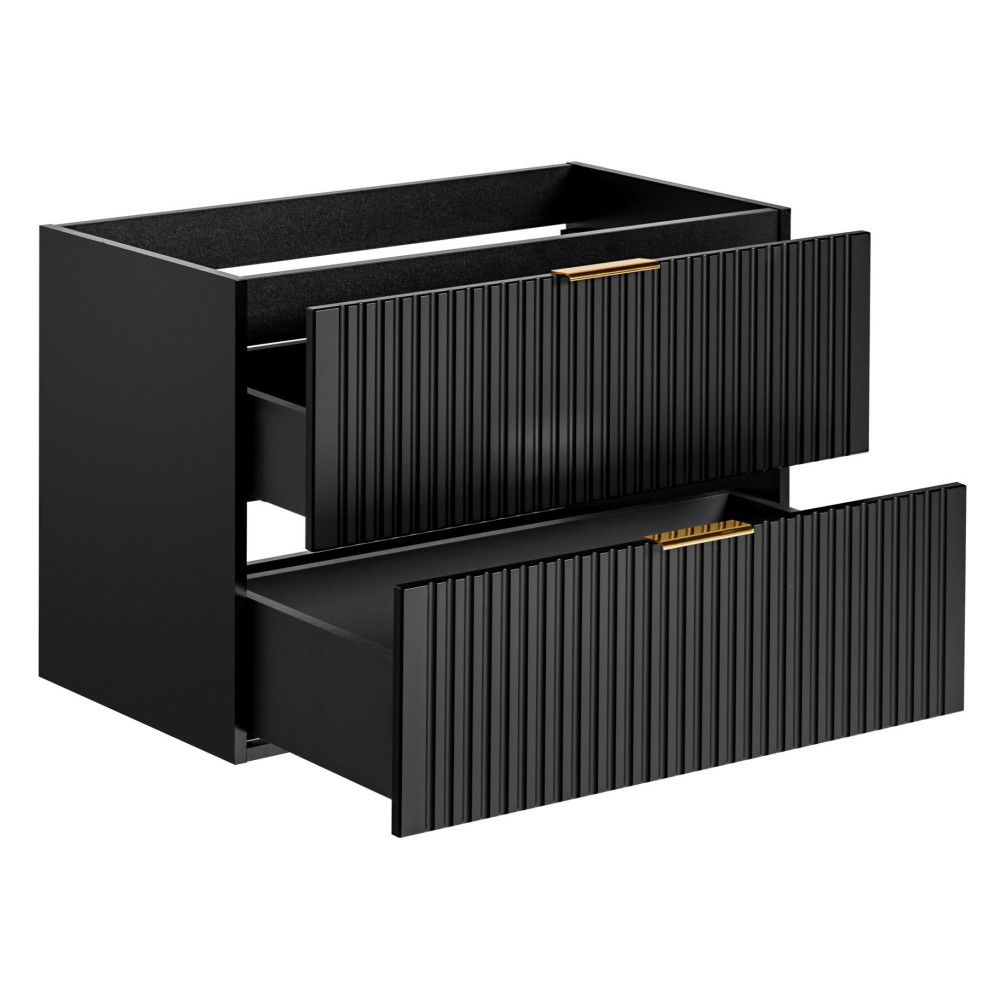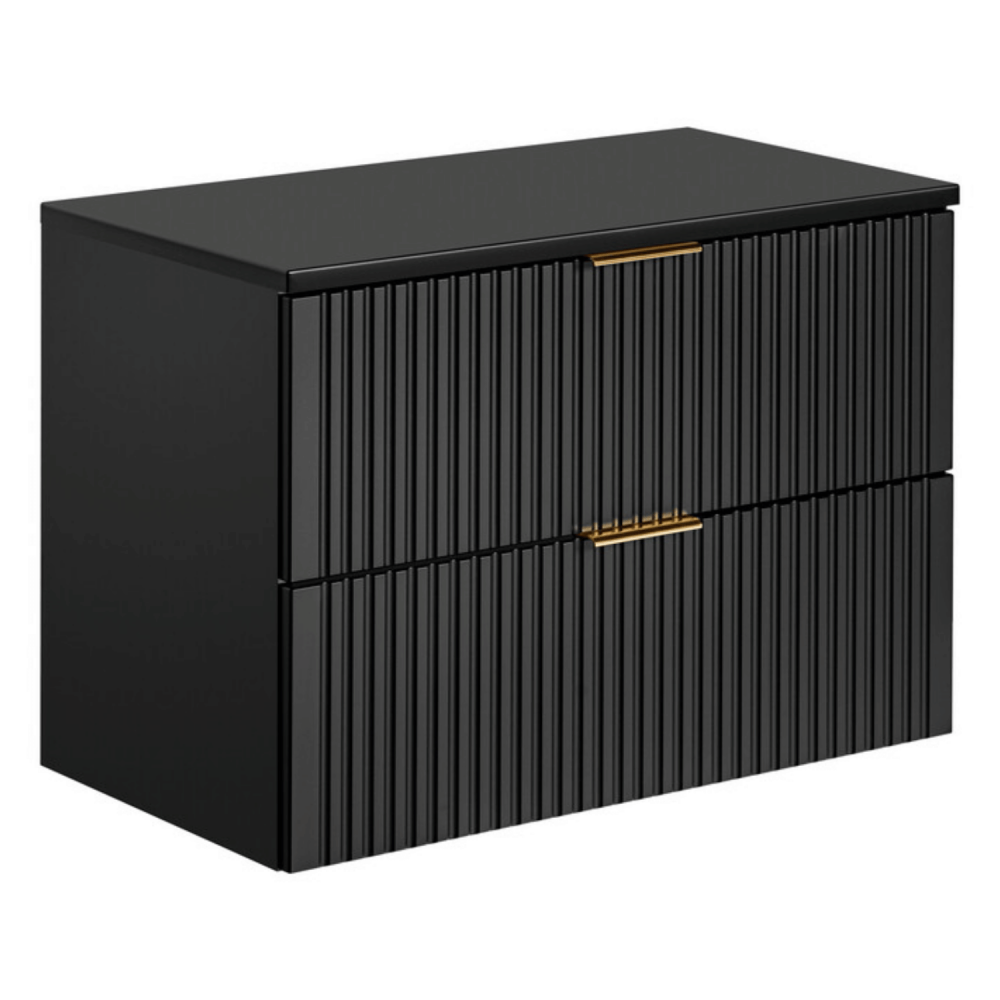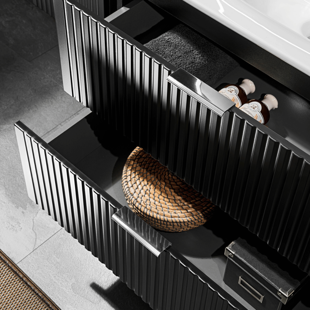 Nowoczesna Ryflowana Szafka Łazienkowa 80 cm w Głębokiej Czerni Matowej