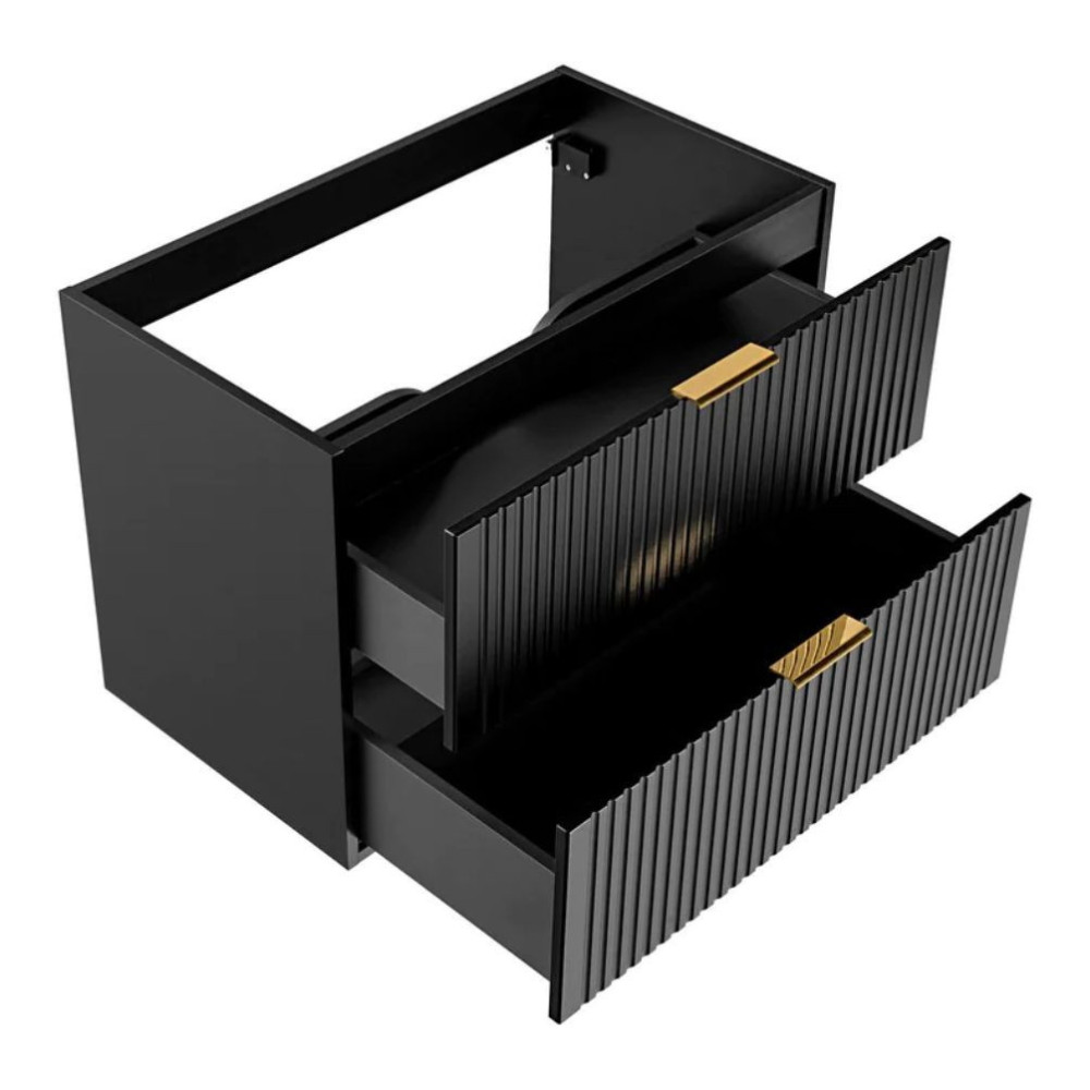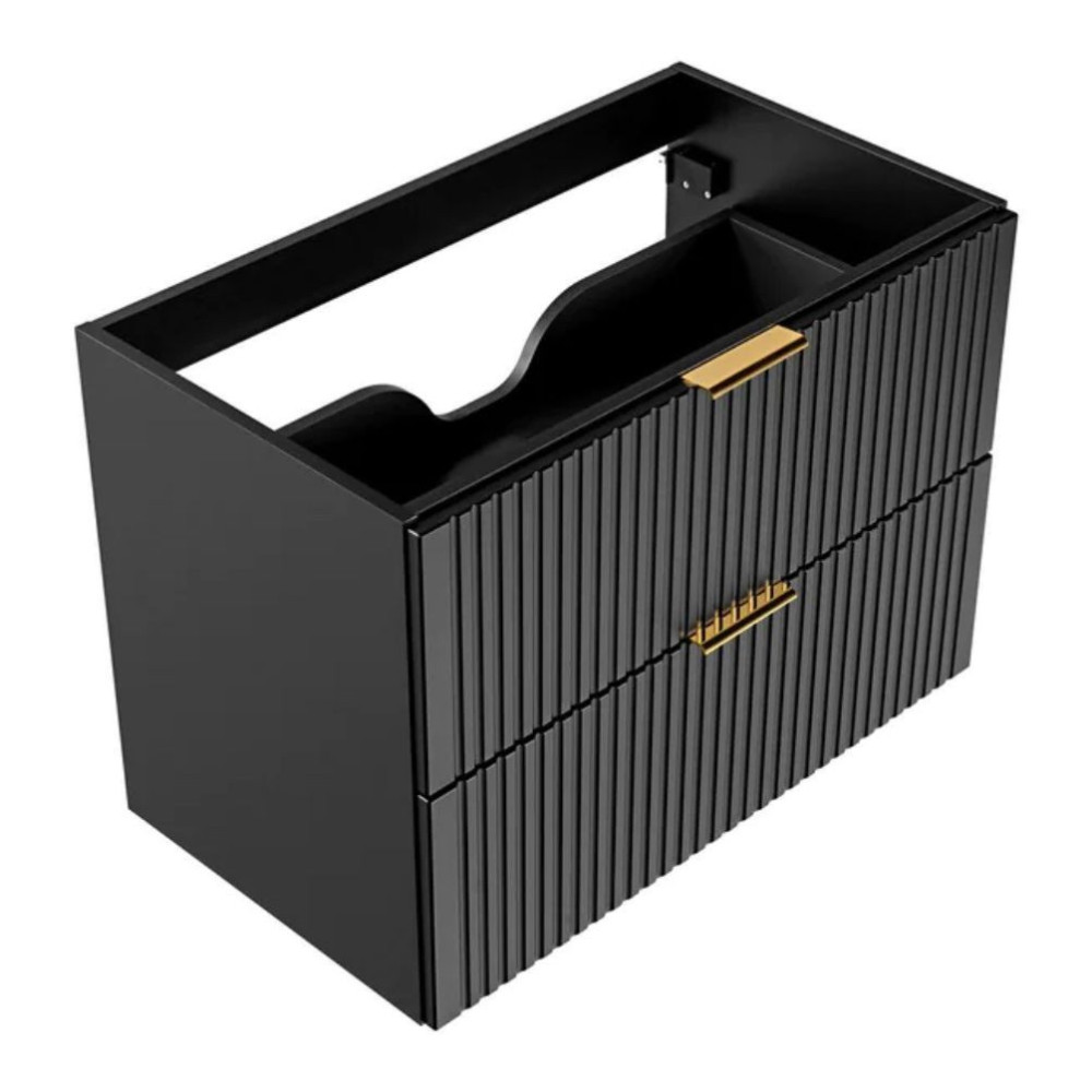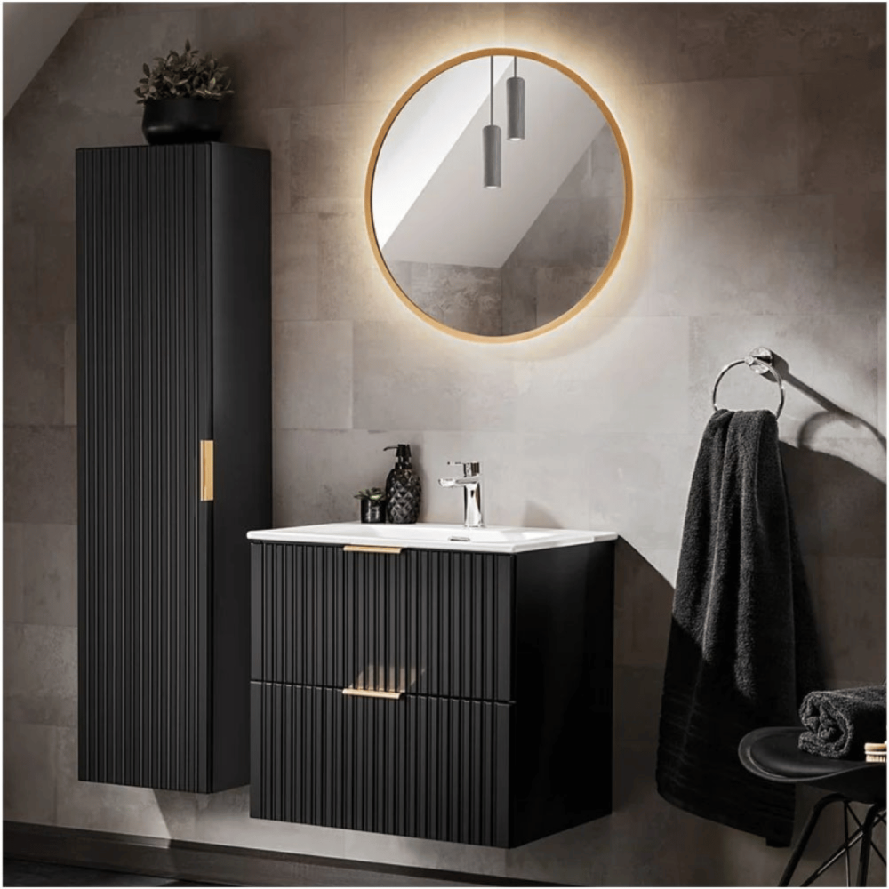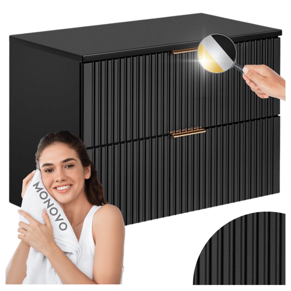 Nowoczesna Ryflowana Szafka Łazienkowa 80 cm w Głębokiej Czerni Matowej