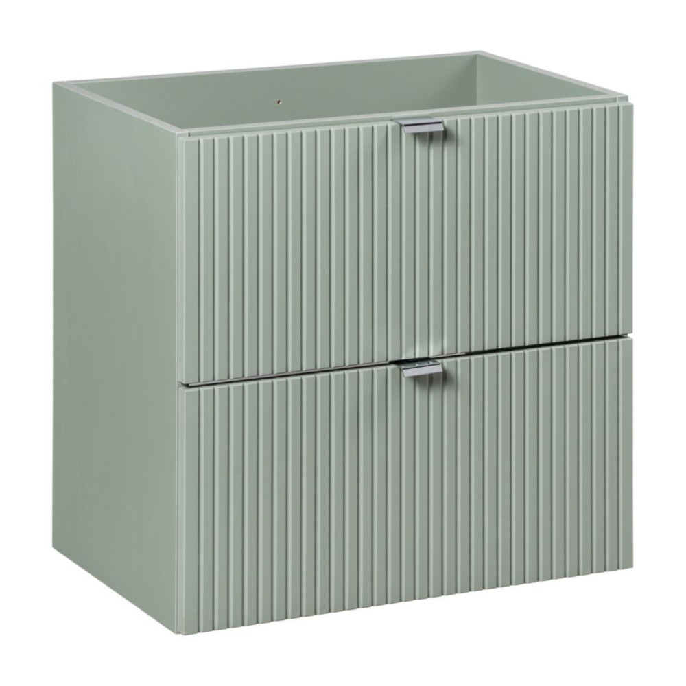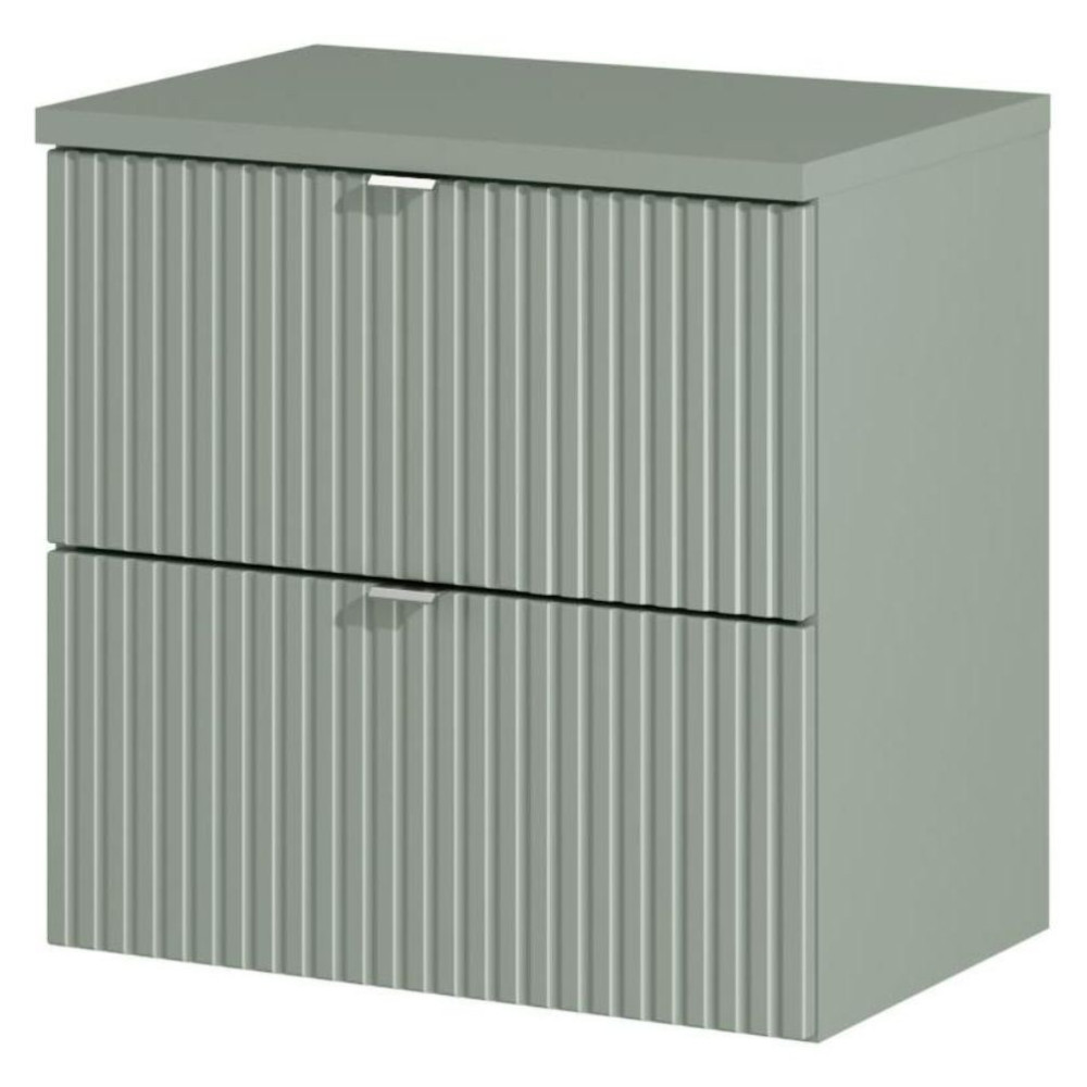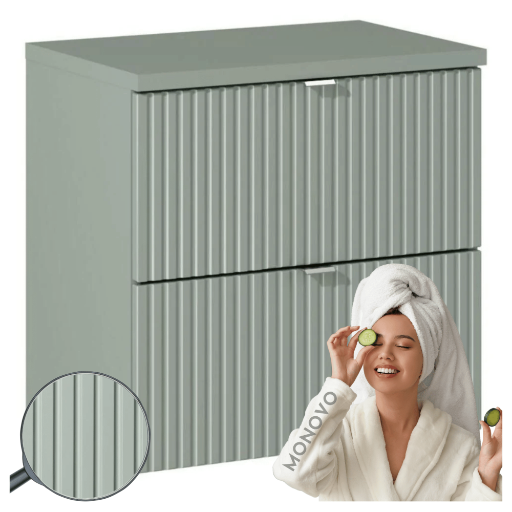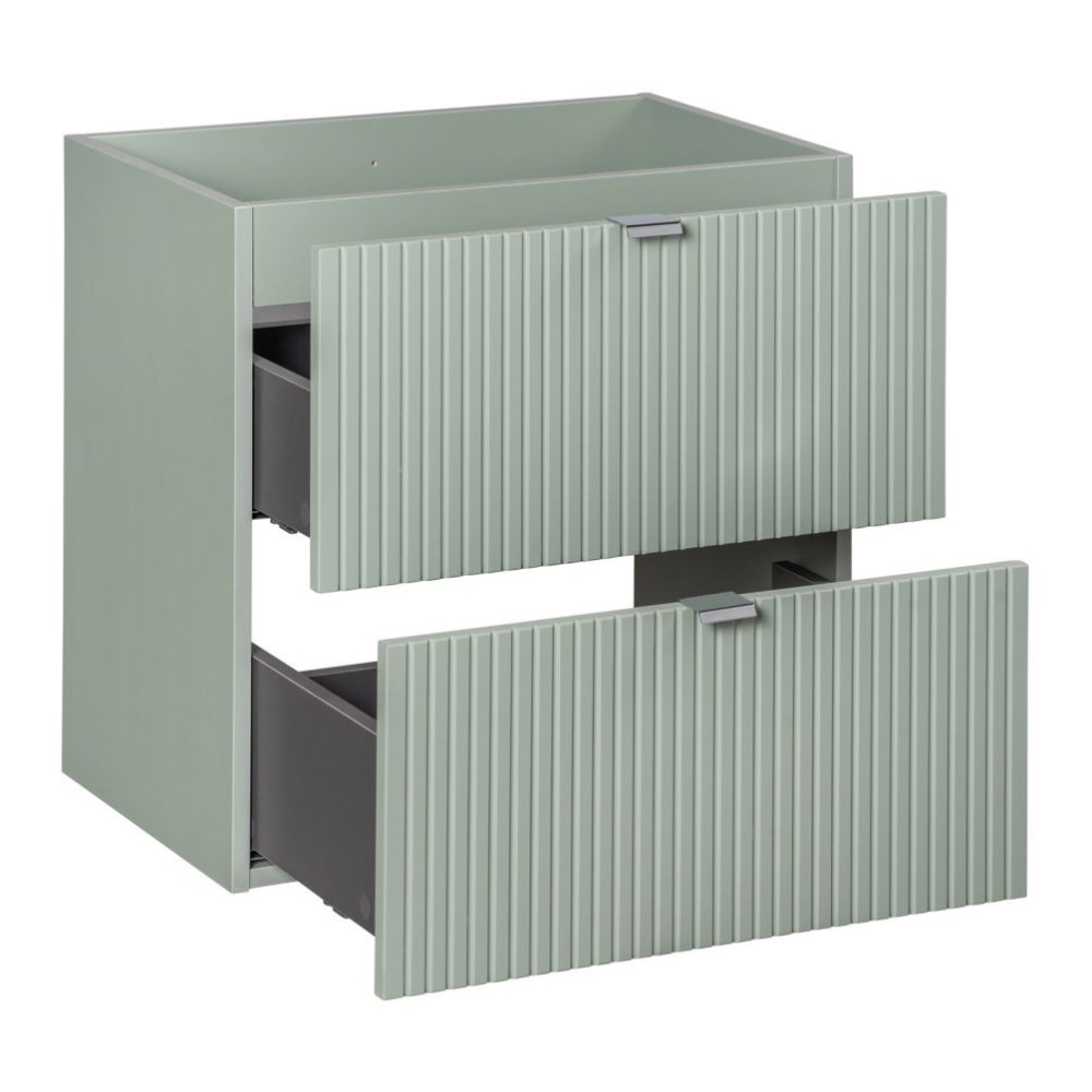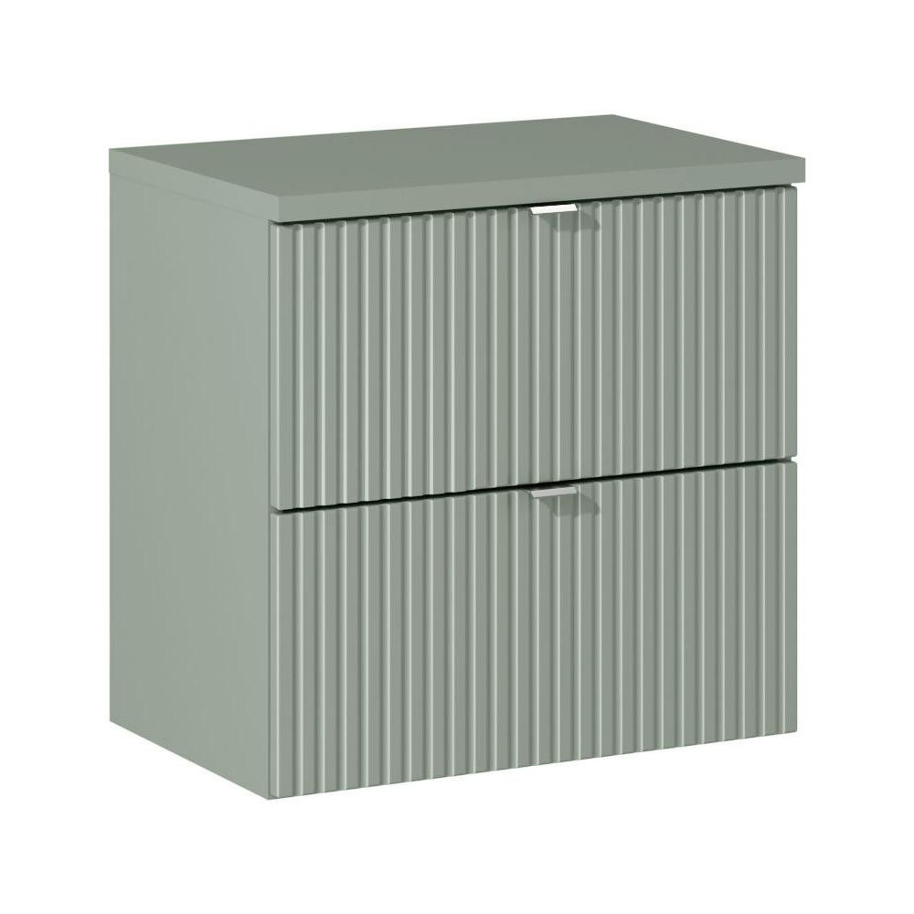Szafka pod Umywalkę z Blatem 60 cm do Łazienki z Szufladami Nowoczesny Ryflowany Szałwiowy Mat LINE REED GREEN Comad