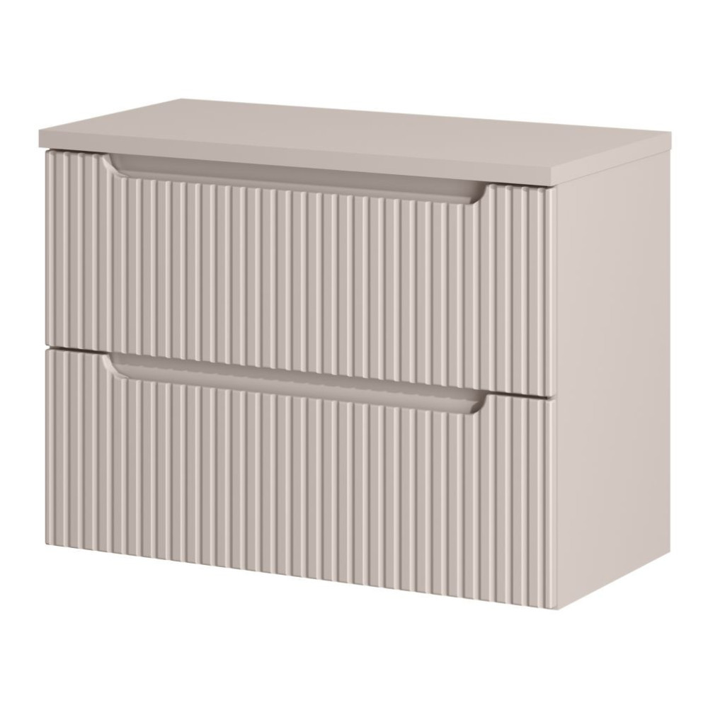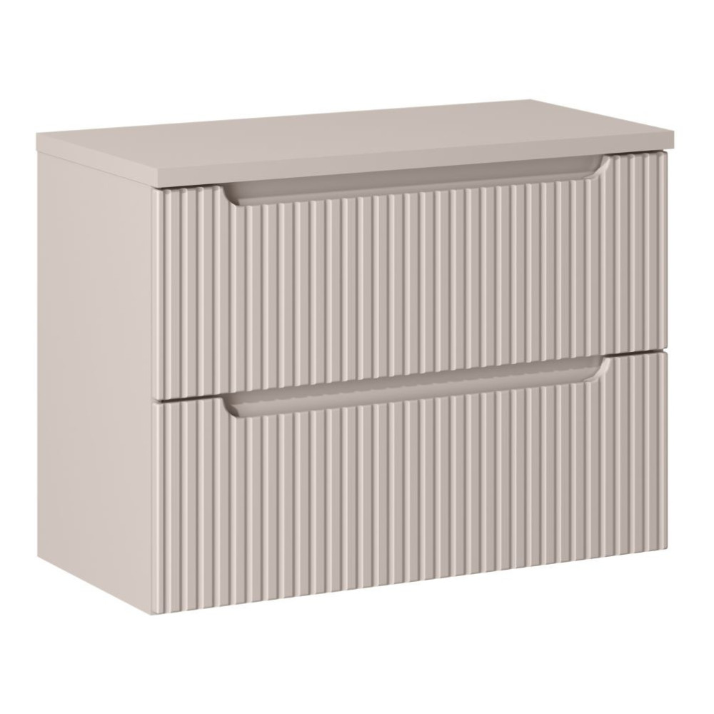 Szafka pod Umywalkę z Blatem 80 cm Ryflowana z Szufladami do Łazienki Boho Beżowy Mat NOC