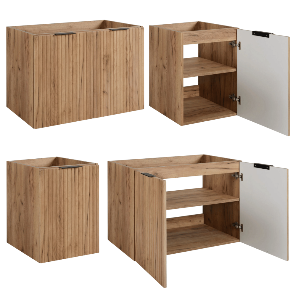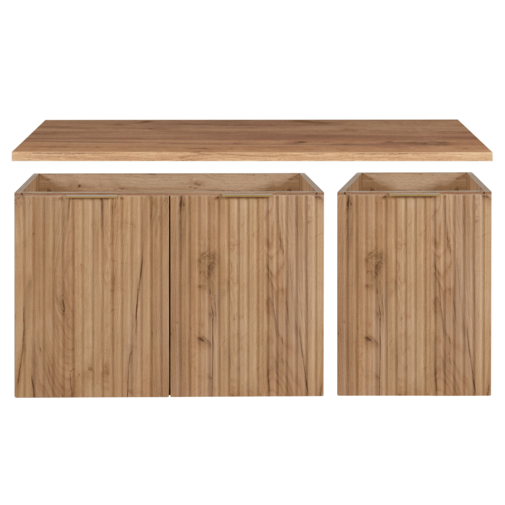 Szafka do Łazienki 120 cm z Blatem Nowoczesna Ryflowana Wisząca Dąb FLOW