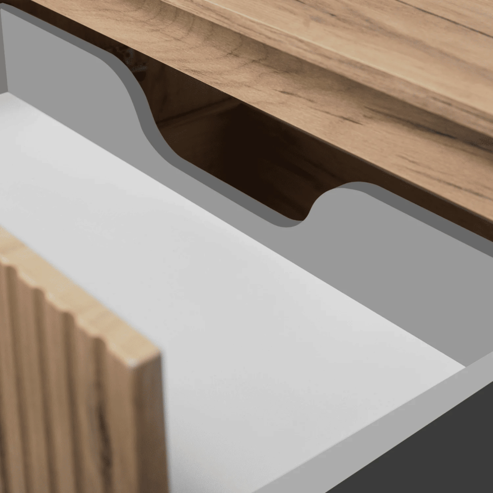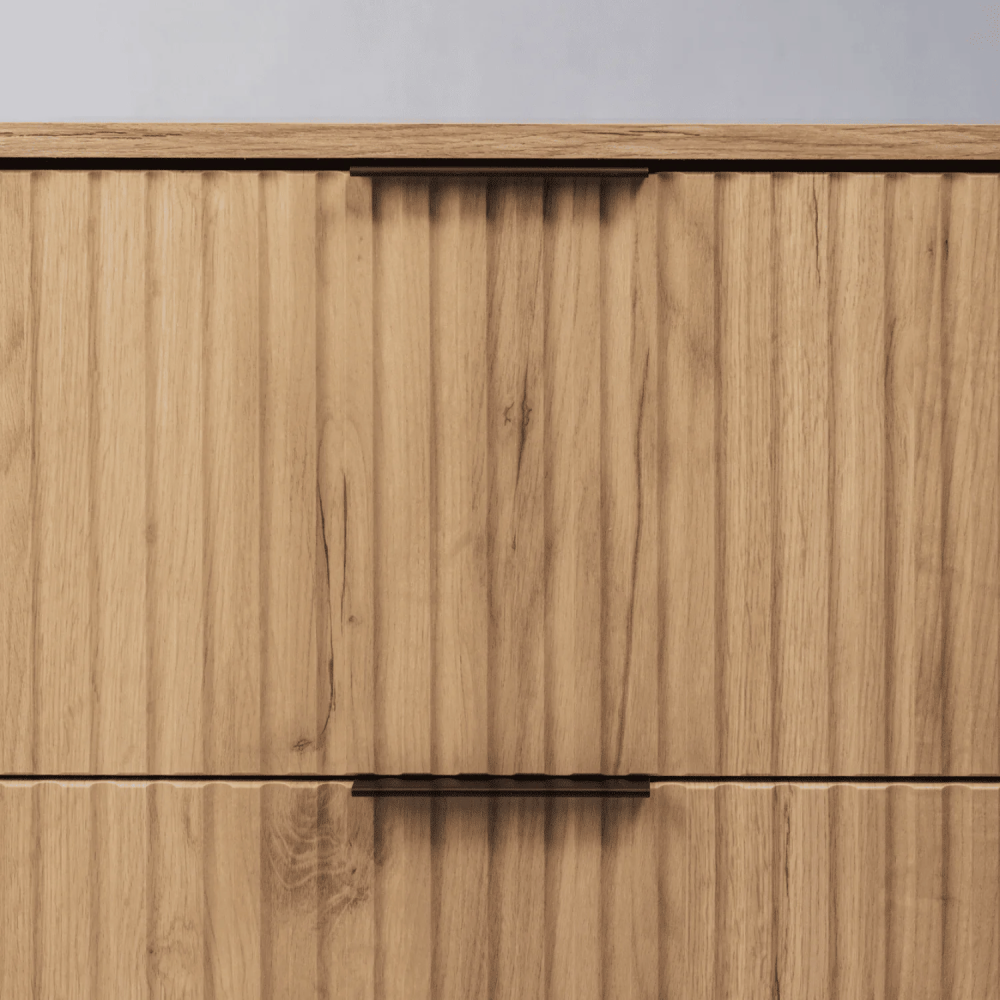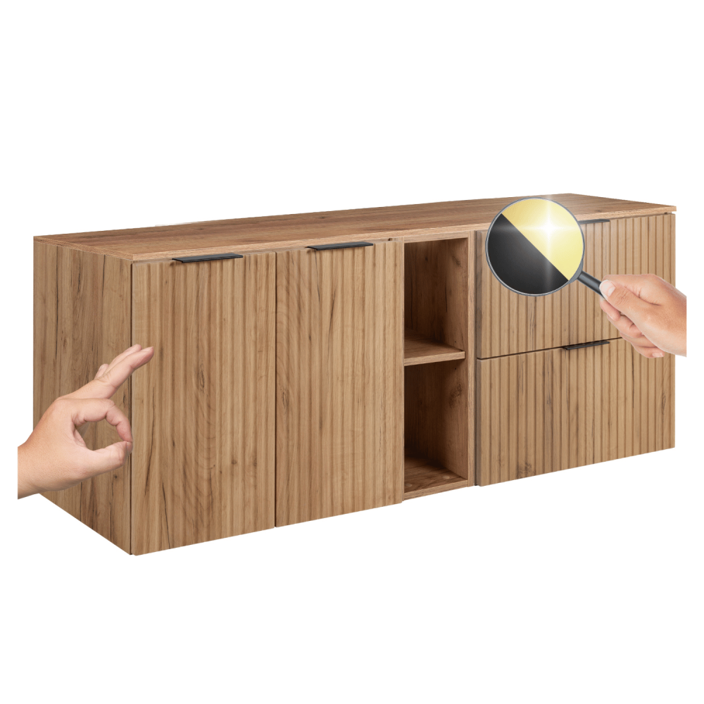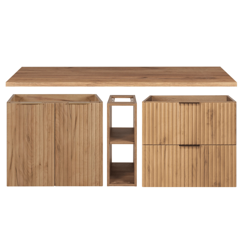 Szafka Łazienkowa z Blatem 140 cm Nowoczesna Ryflowana Wisząca z Regałem Dąb FLOW