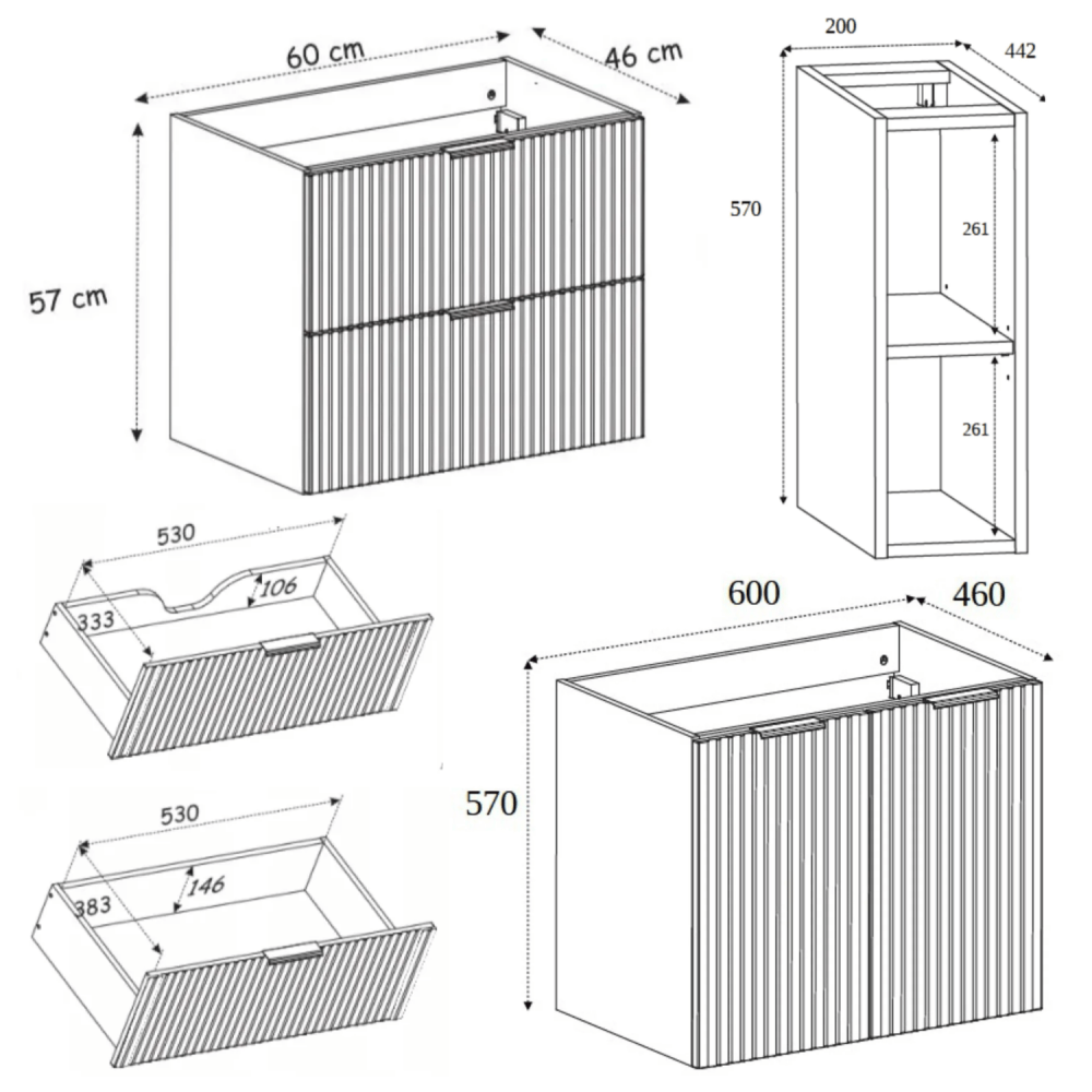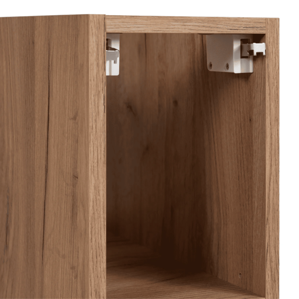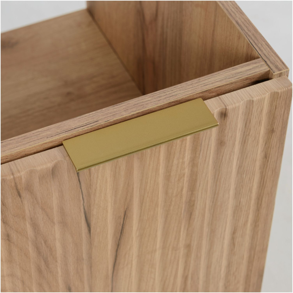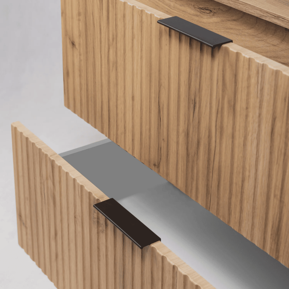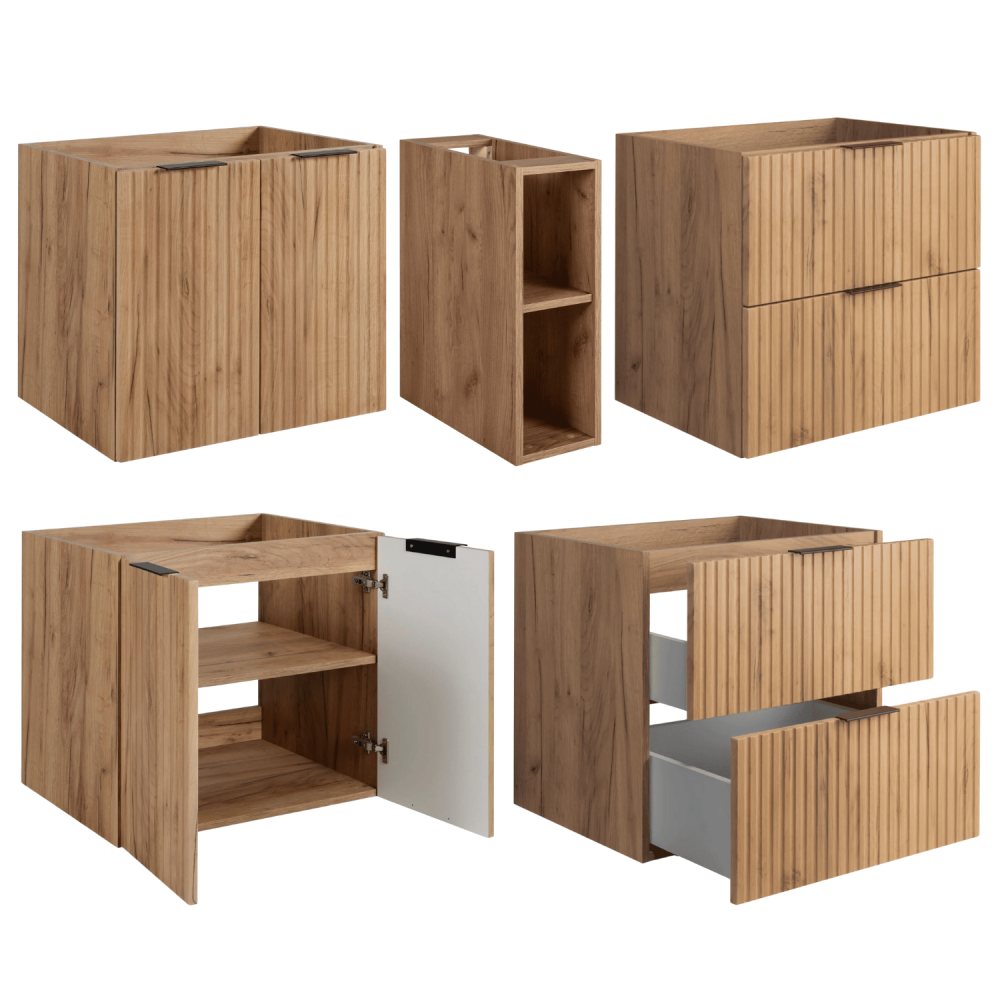 Szafka Łazienkowa z Blatem 140 cm Nowoczesna Ryflowana Wisząca z Regałem Dąb FLOW